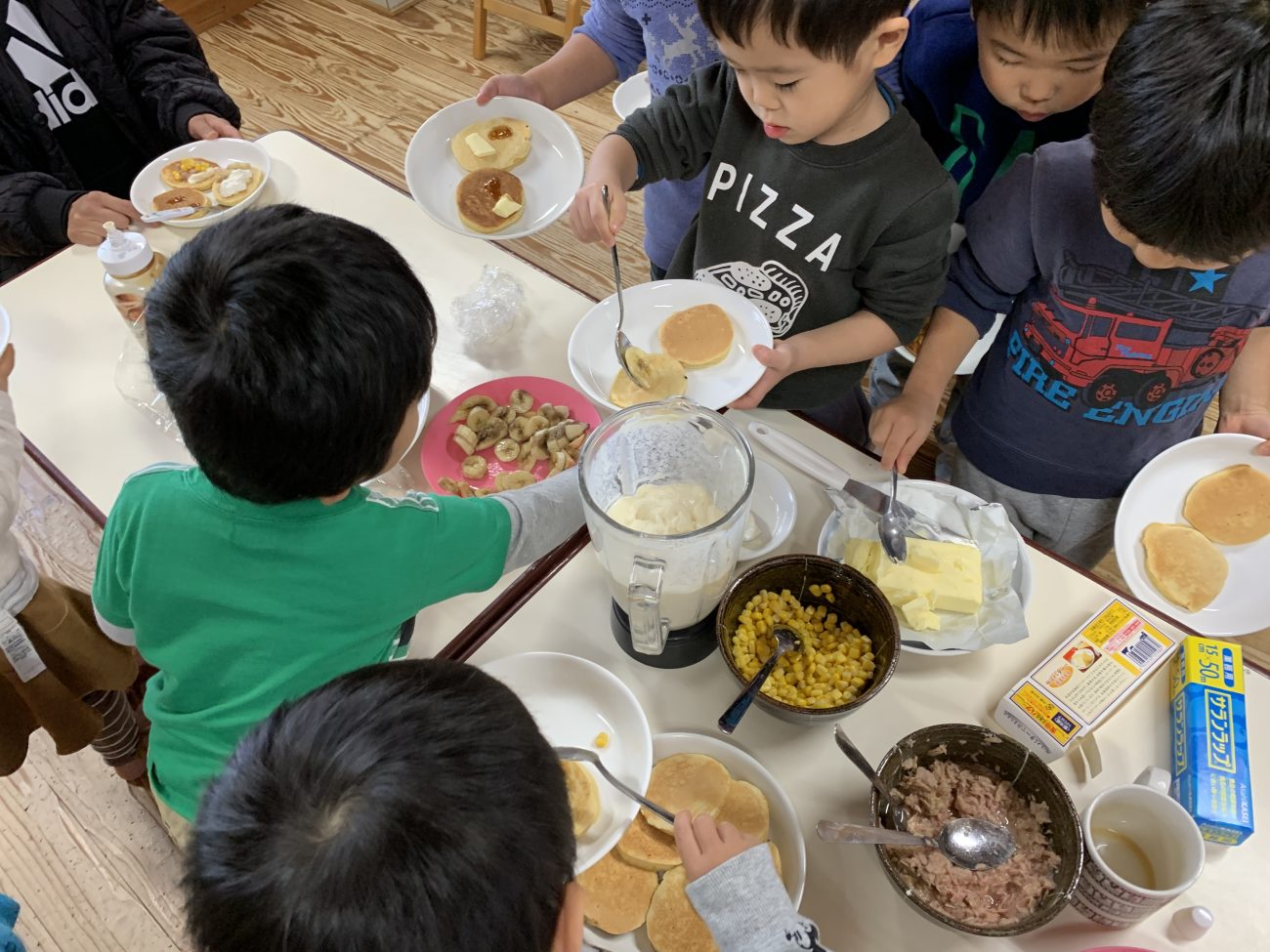 今回のホットケーキ作りでは何度も話し合いを重ねて実行することができ、クッキングを通して子ども達は、話し合いをする大切さや食べる楽しさを高められたのではないかと私は思います。