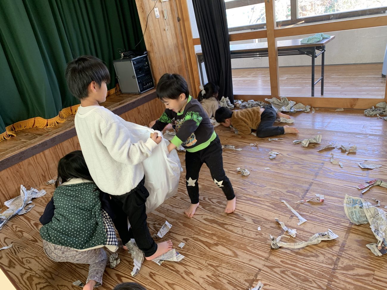また、一度で沢山の新聞紙を集める方法をお互いに教え合ったり、真似し合ったりする子ども達もいました。☆試行錯誤、工夫