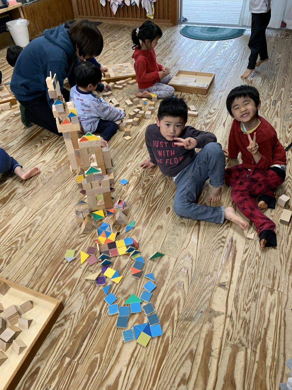 遊ぶなかでしぜんに色彩に対する完成や基礎的な幾何学は身につきます。大人が遊び方を工夫することで、楽しみながら色彩の秩序と平面幾何の知識も、分かりやすく理解してもらうことができます。