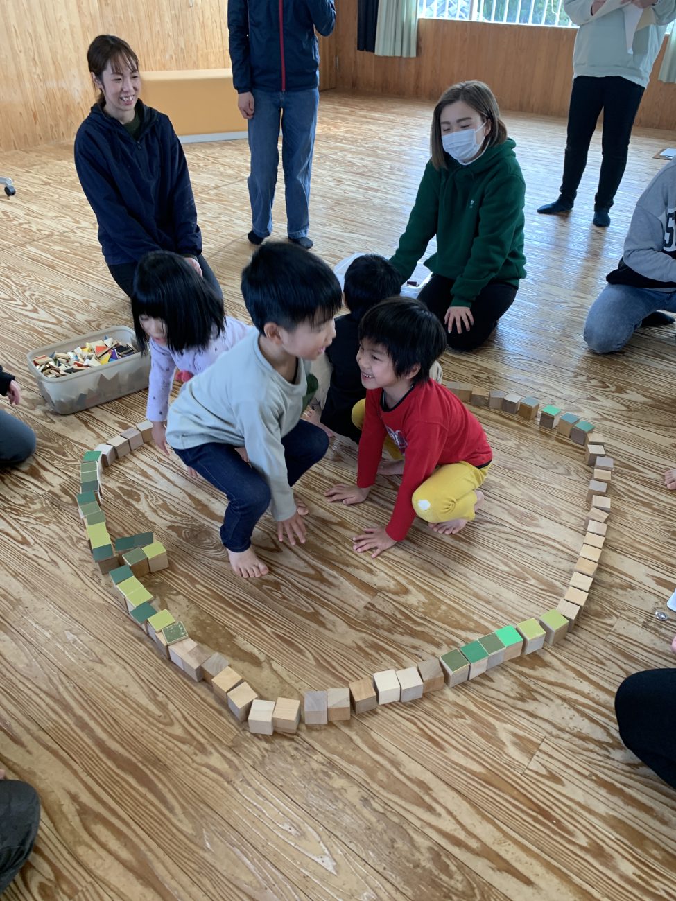 11月に、ほるぷキッズパークの伊佐先生をお招きし童具の一貫となるケルンモザイクの研修を行いました。