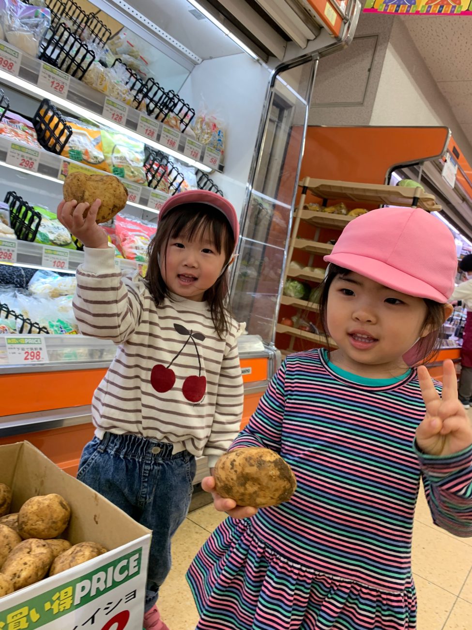 買い物では、絵本で野菜の絵を見ていたということもあり、それぞれの野菜を見つけることができていました。