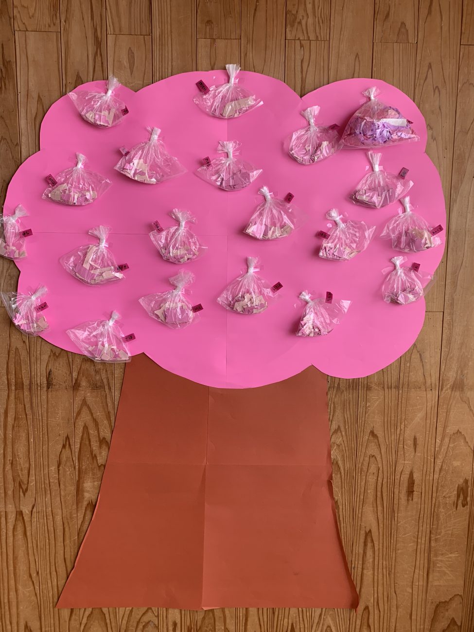 ゆり組のお部屋にも、子ども達が一生懸命切った画用紙を花びらに見立てた、とってもキレイな桜が咲きました!