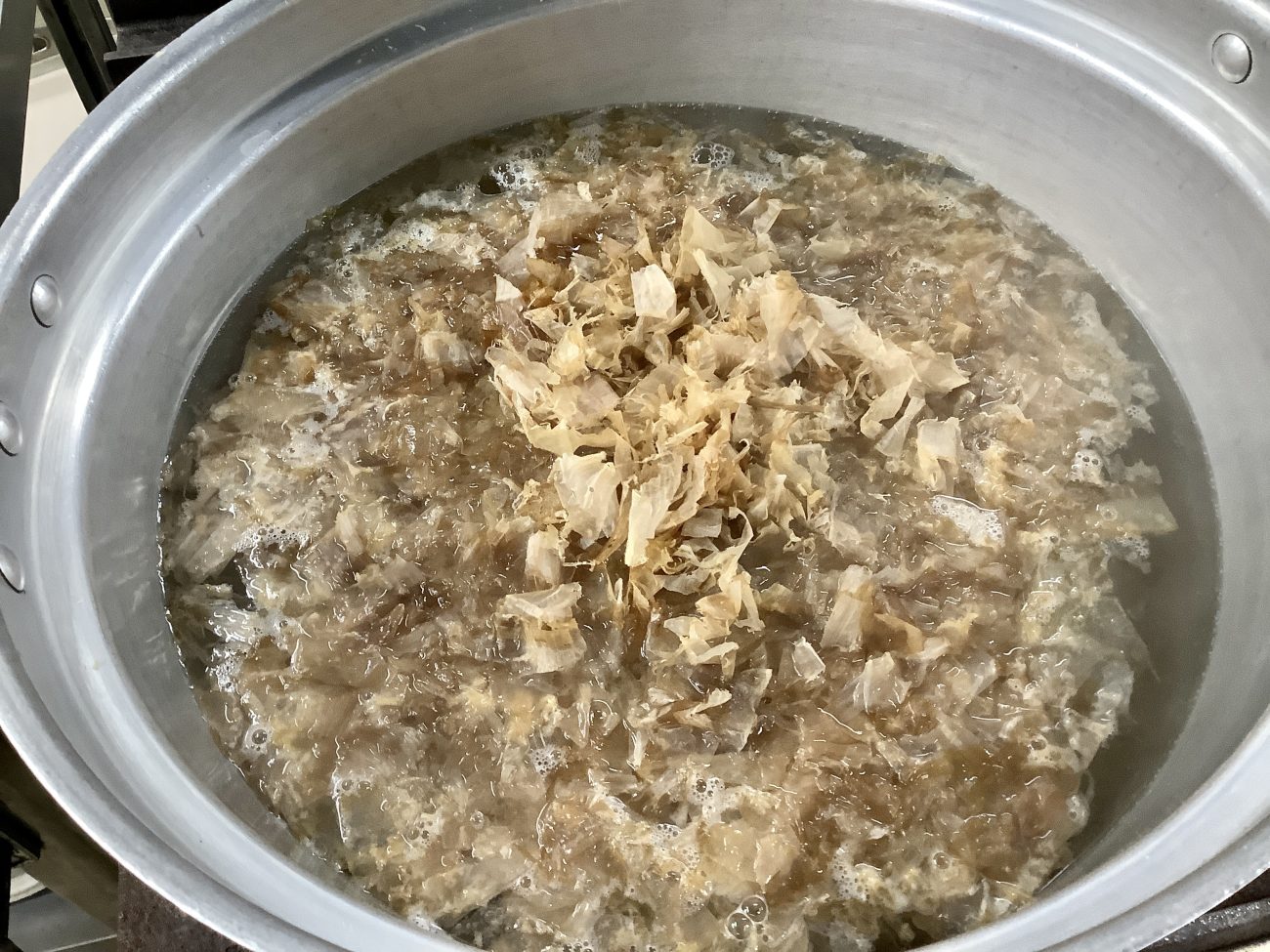 かぼちゃの煮物は、鰹節と昆布で出汁をとってから、醤油・みりんを加え煮ました。中まで出汁が染み込み、鰹のいい香りのする煮物となりました。