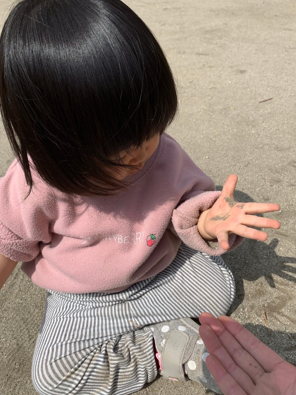 更に数分後、前後左右なことに自ら気付き、「して!」と私に手を伸ばしてきたので、そのタイミングで私もお手伝いをしました。