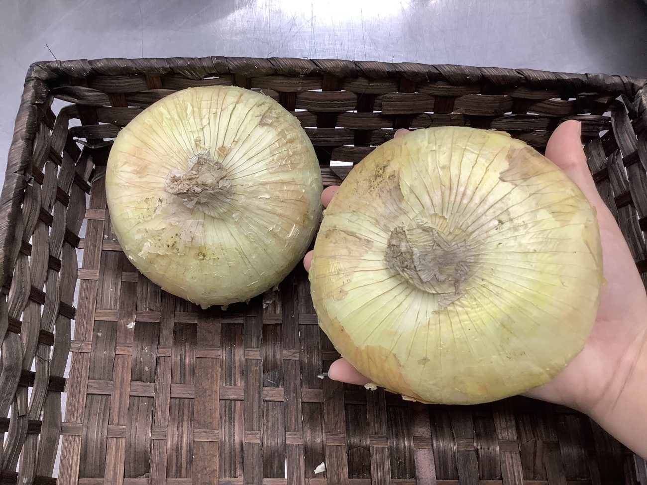 チーズハンバーガーは、ハンバーグ・チーズ・レタスを豆乳マヨネーズを塗ったパンで挟みました。ハンバーグに入れる玉葱は、手のひらサイズのとても大きな新玉葱が届きました。そして、年長さんと年中さんは、セルフで、子どもたち自身に具材をパンで挟んでもらいました。子どもたちも新鮮な体験ができたのか、とても喜んでくれていて、たくさん食べてくれました。大人気のメニューとなりました。