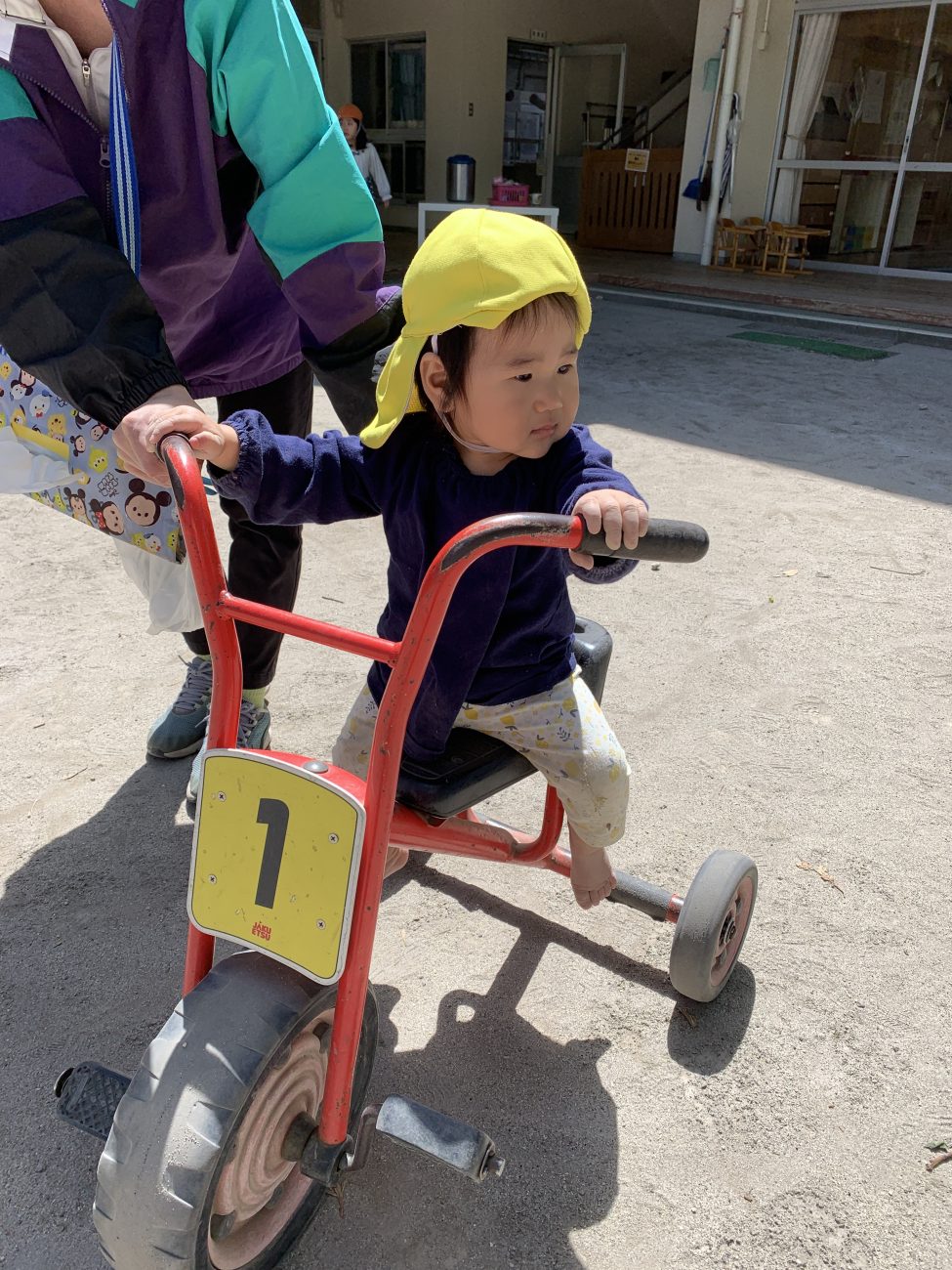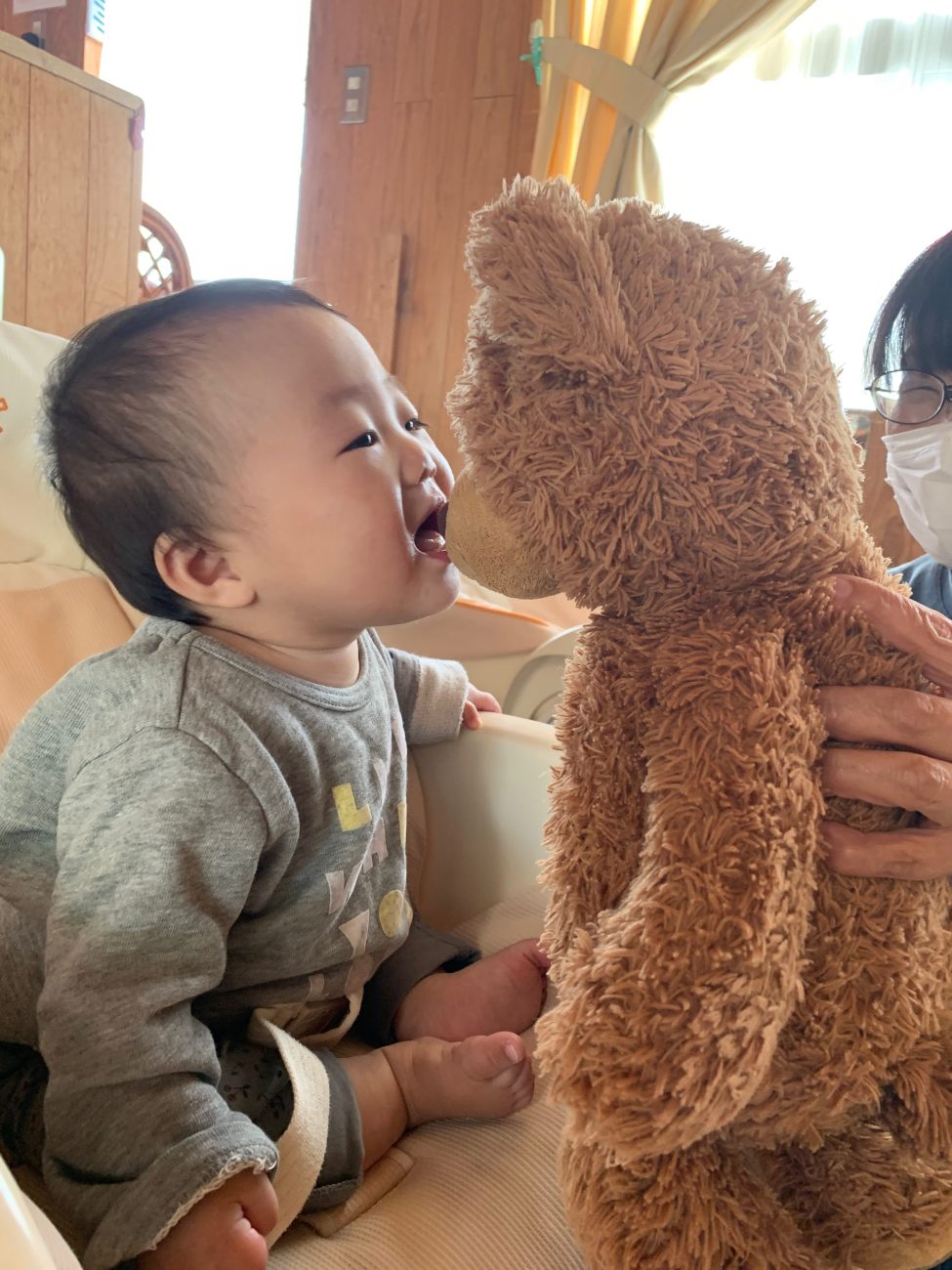 4月当初は、登園した際に、慣れない場所に驚いたり悲しくなったりしていました。しかし、少しずつたんぽぽ組の担任の顔を覚え私たちが出勤すると笑顔で駆け寄って来てくれるようになりました。