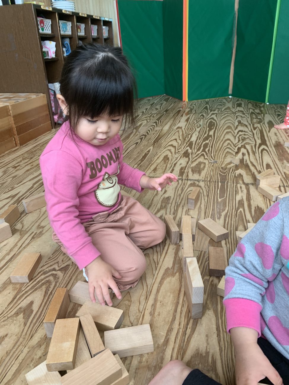 保育室前に掲示してあるポートフォリオでもご紹介していますが、園庭を元気に駆け回ったり、お友達同士でおままごと遊びをするなど、それぞれが好きな遊びを見つけながら、遊びを通して集団生活を学んでいます。