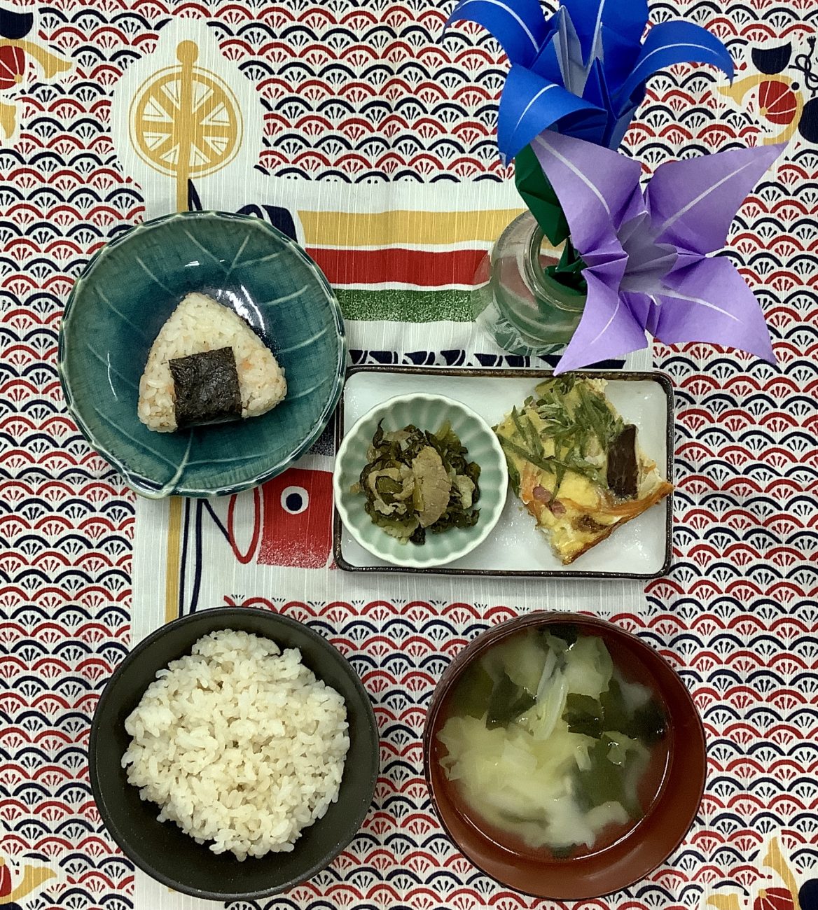 本日のメニューは、”豆腐の千草焼き””高菜と豚肉の炒め物””キャベツの味噌汁”でした。