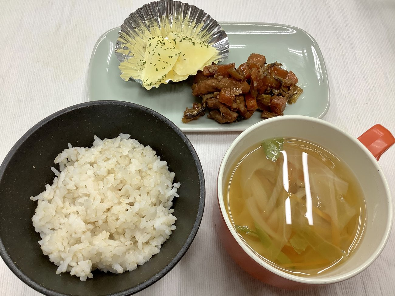本日のメニューは、”黒酢チキンアドボ””粉ふき芋””ジュリエンヌスープ”でした。