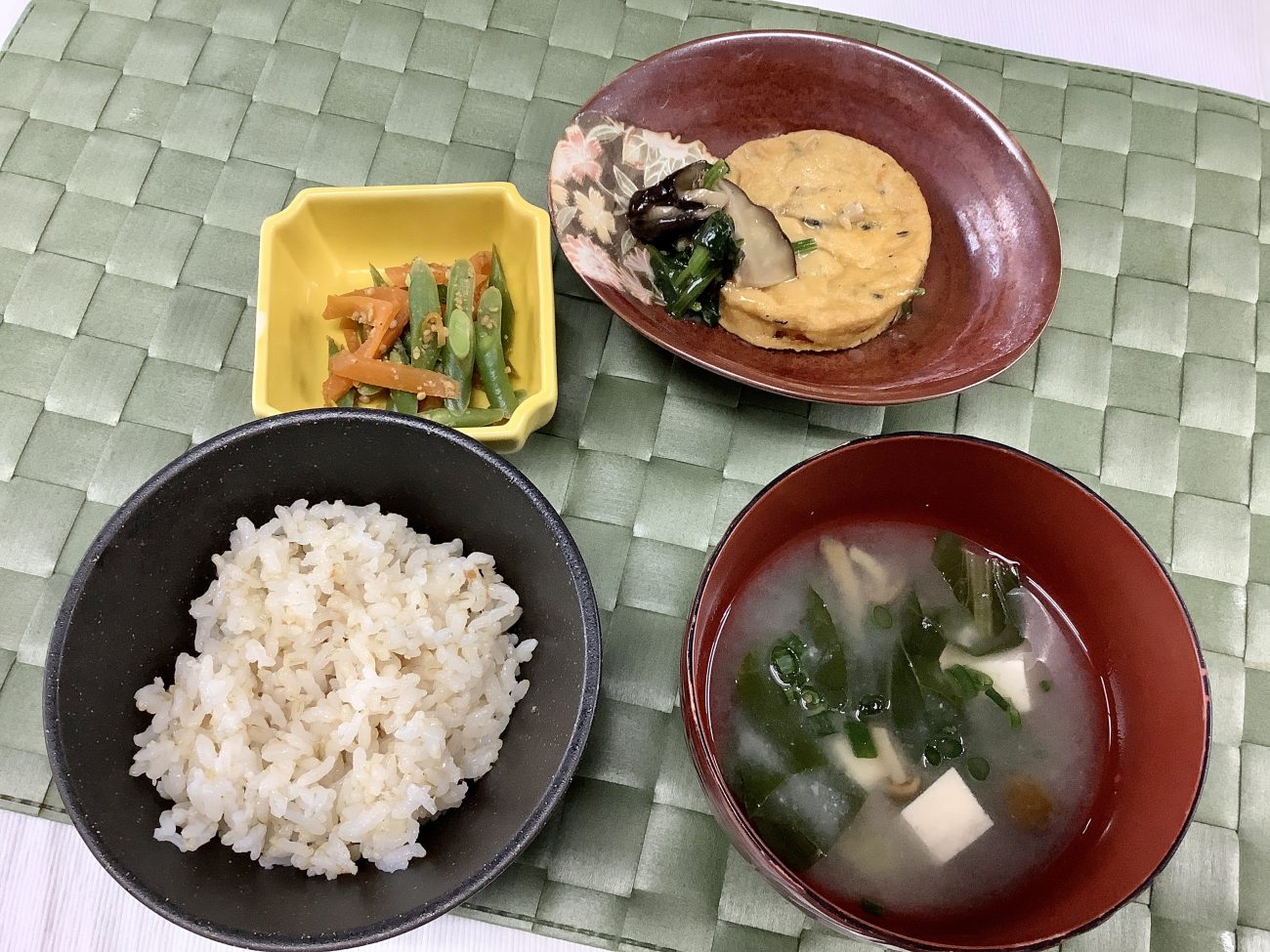 本日のメニューは、”がんもどきのうま煮””いんげんのごまよごし””小松菜のみそ汁”でした。
