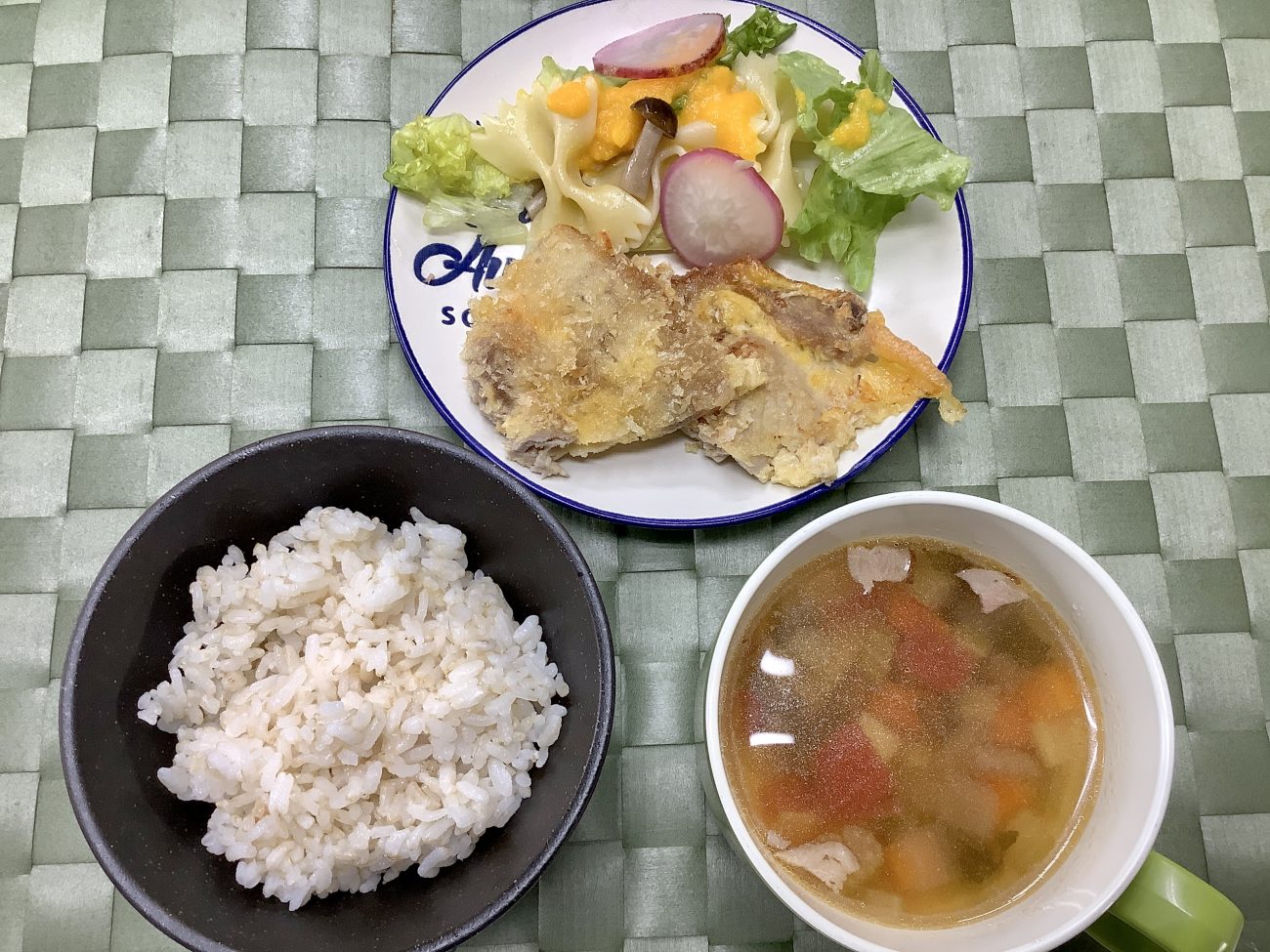 本日のメニューは、”豚肉のパネソテー””ラディッシュサラダ””ミネストローネ”でした。