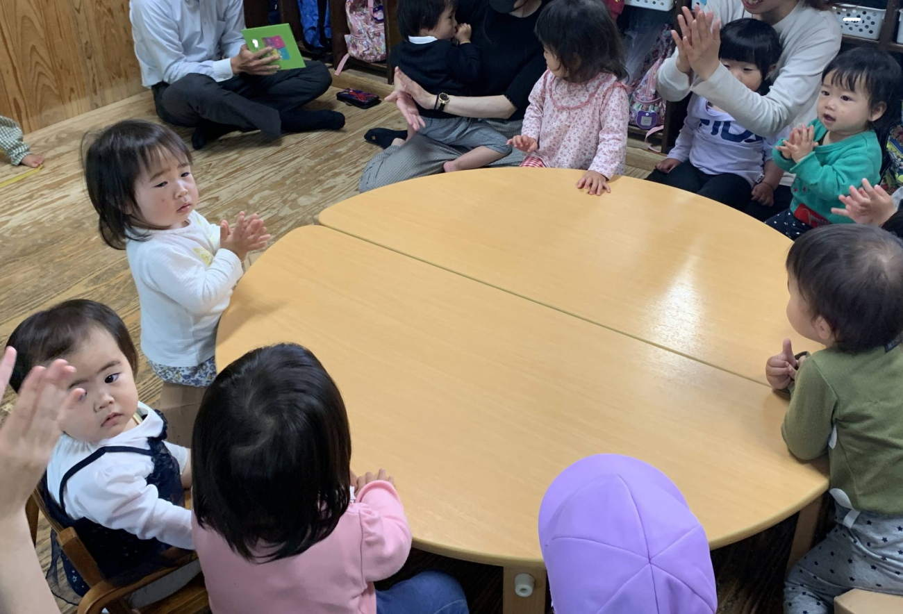 うめ組(1歳児クラス)で2歳のお誕生日を迎えた子どもたちがいます。今回は、5月に行われた誕生日会の様子を、一つ取り上げてお伝えします。