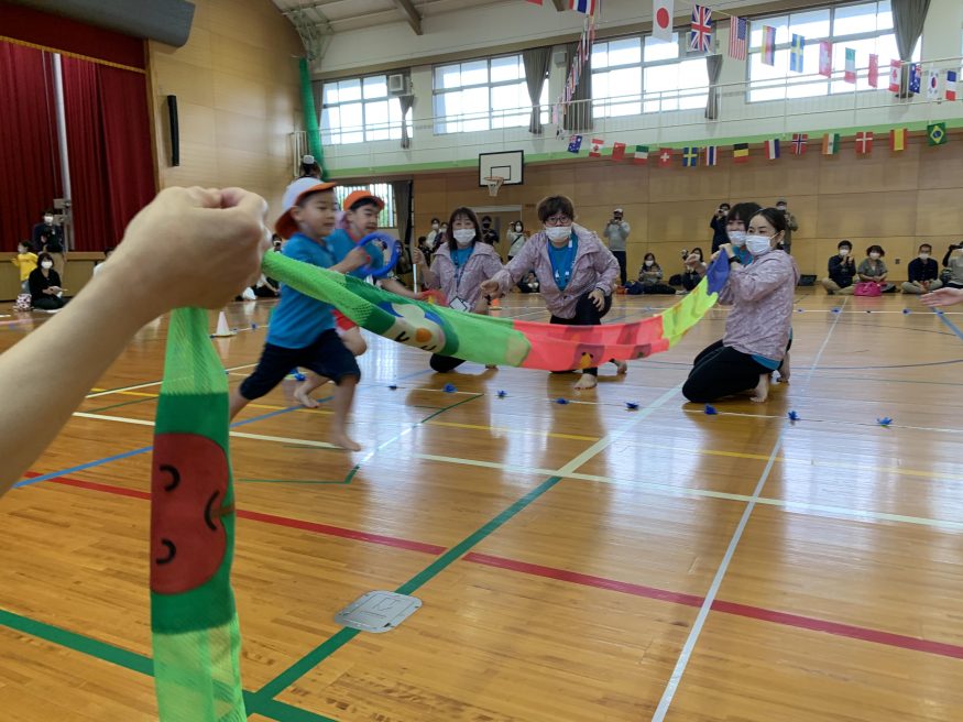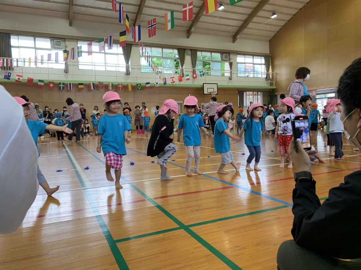 初めてのダンシング玉入れ。練習から、子ども達が大笑いしていた競技です。最後まで楽しく運動会に参加できました。