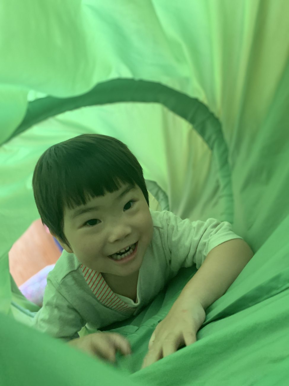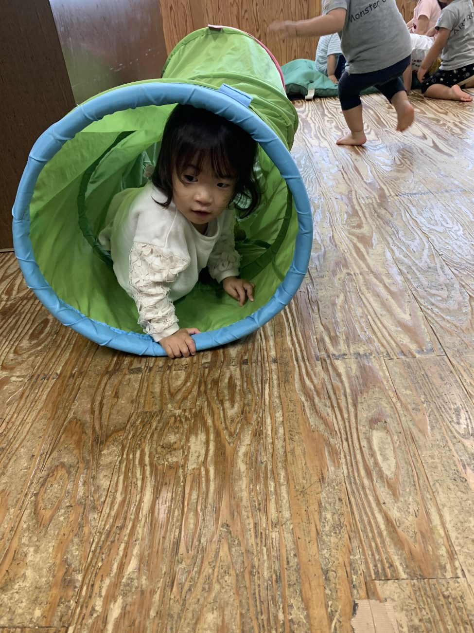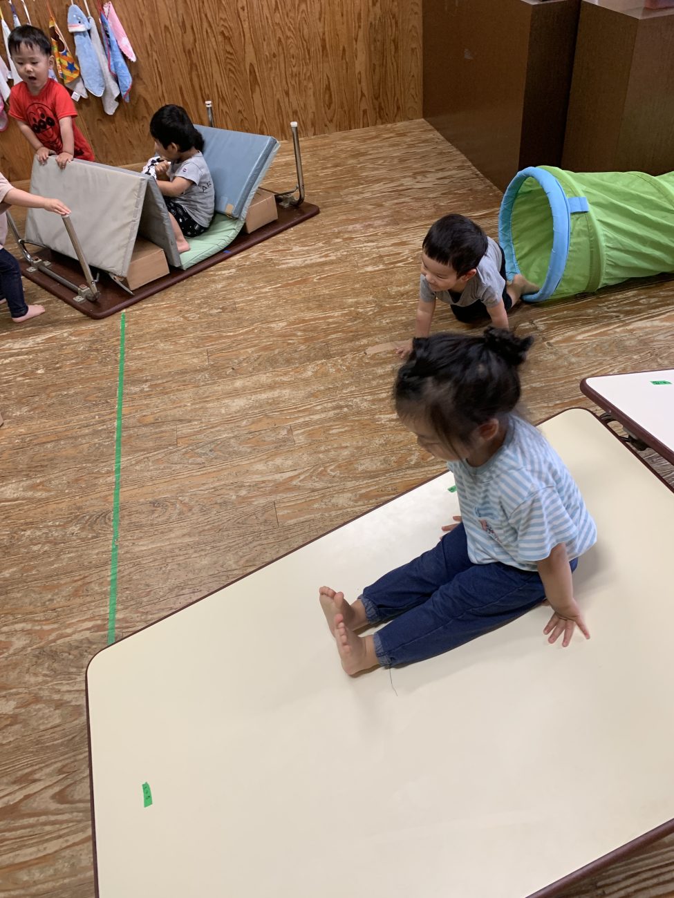 他にも蛇腹トンネルをくぐったり、イスとイスを渡って遊んだりなど、それぞれが1番好きな動きを見つけて楽しんでいます。