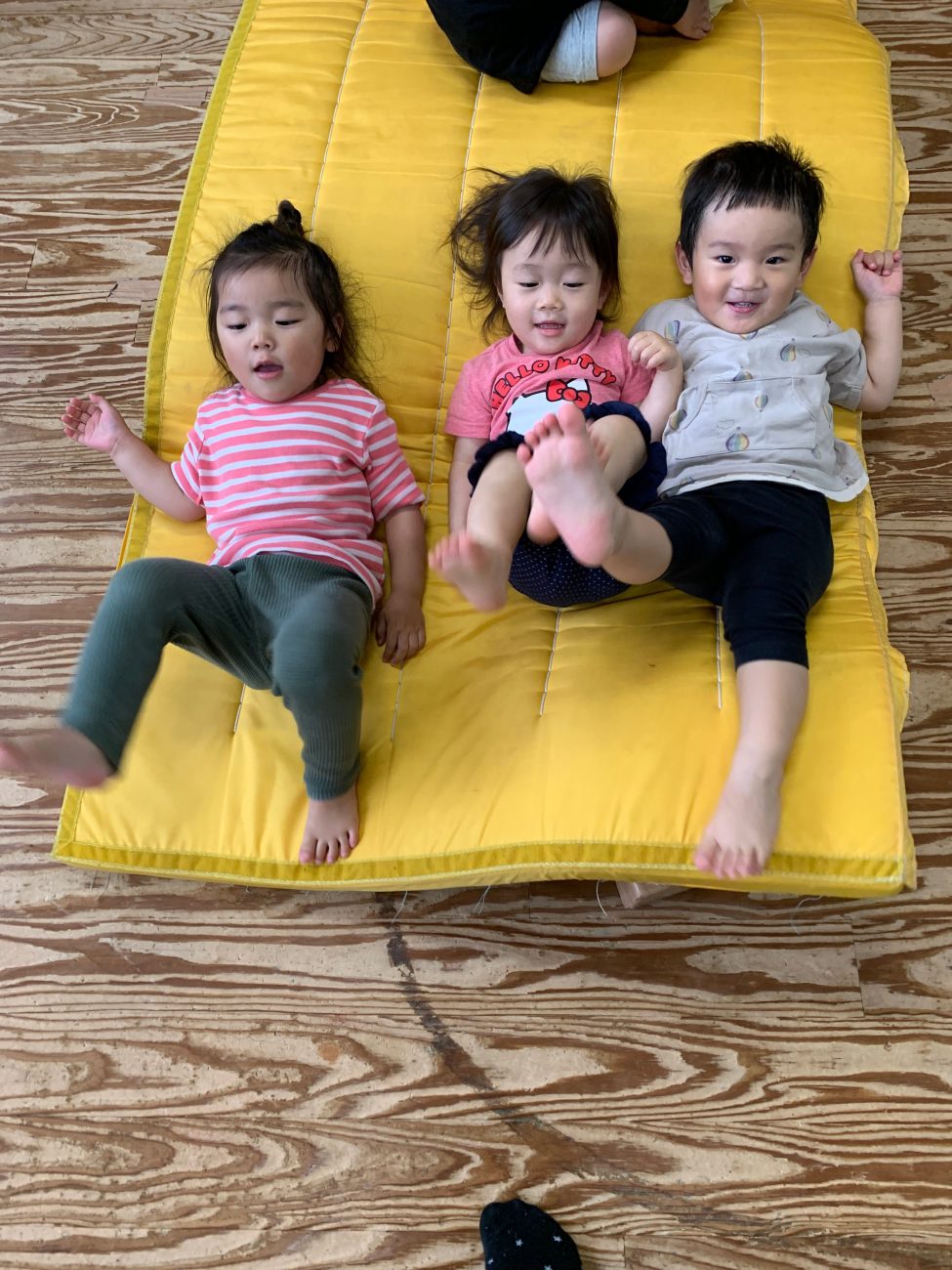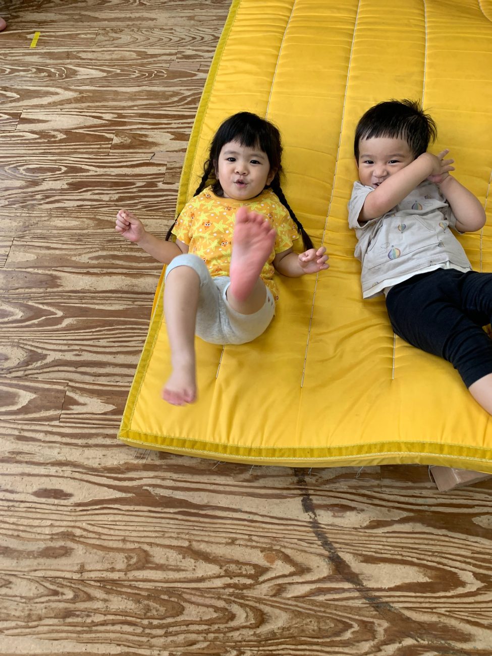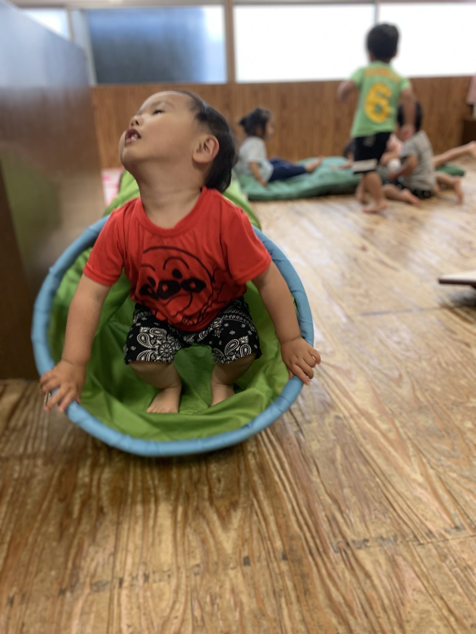 他にも蛇腹トンネルをくぐったり、イスとイスを渡って遊んだりなど、それぞれが1番好きな動きを見つけて楽しんでいます。