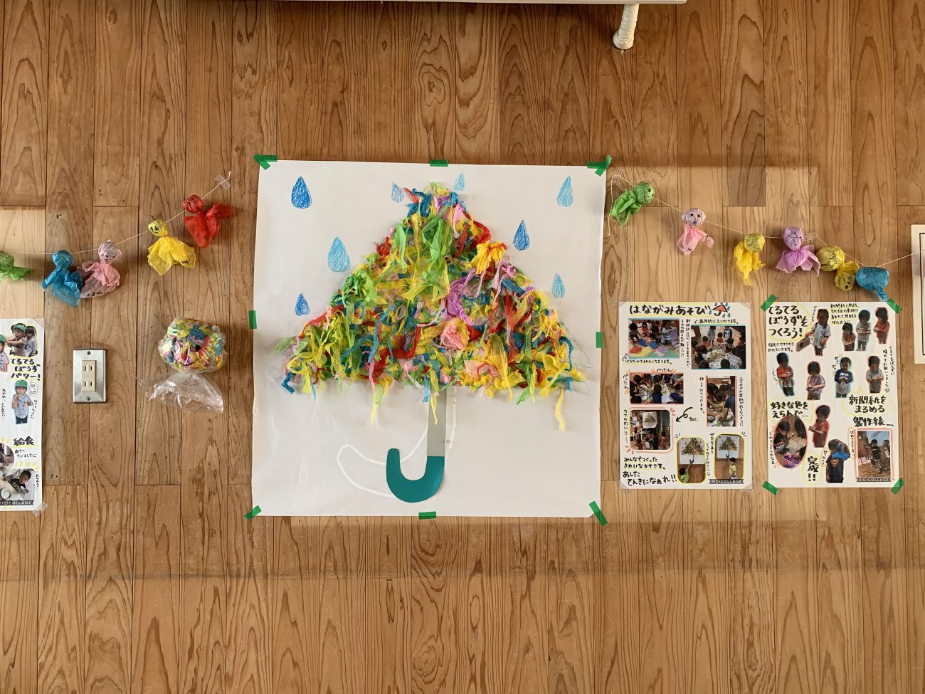 それでもやっぱりお外が大好きな子ども達。晴れるようにみんなで「てるてる坊主」を作りました。すると、次の日の天気は晴れ!!「てるてる坊主さん、ありがとう!」と言って園庭に出て行く素敵なゆり組の子ども達です!