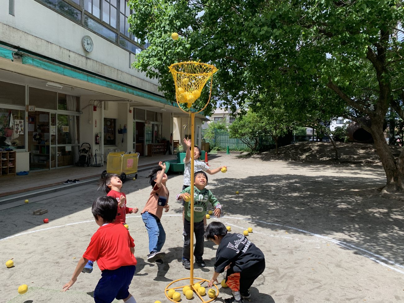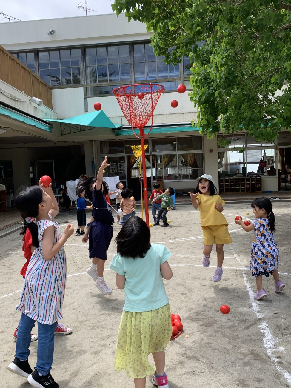 玉入れでは、「優しく投げたら入りやすい」などと自らの気付きをチームで共有し、作戦を立てる姿もありました。遊ぶ中で、制限時間が短いから少し長くしようなどとルールを改善していきます。
