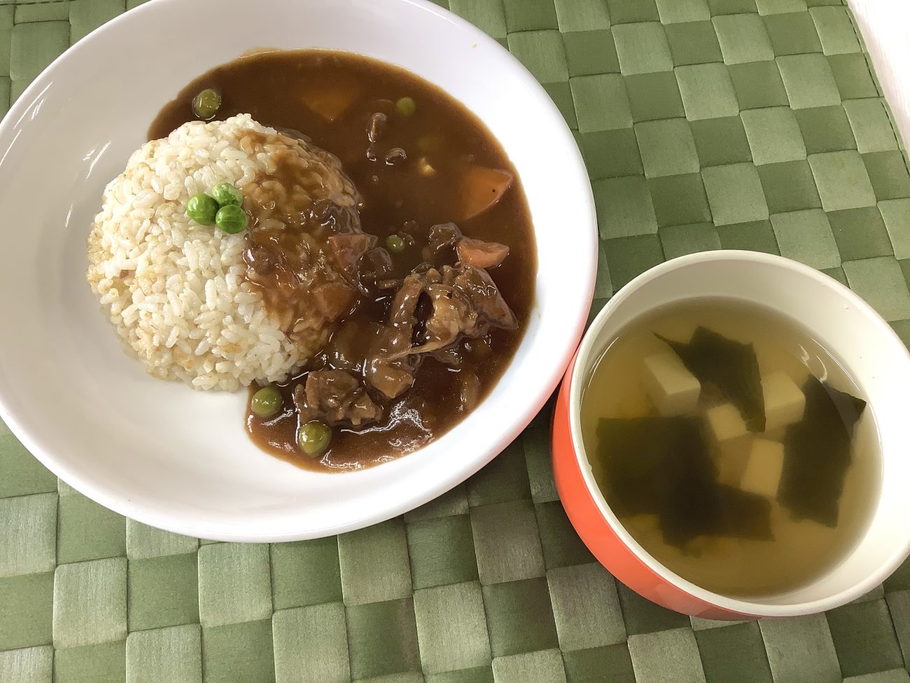 本日のメニューは、”バターライス””ビーフハヤシ””わかめスープ”でした。