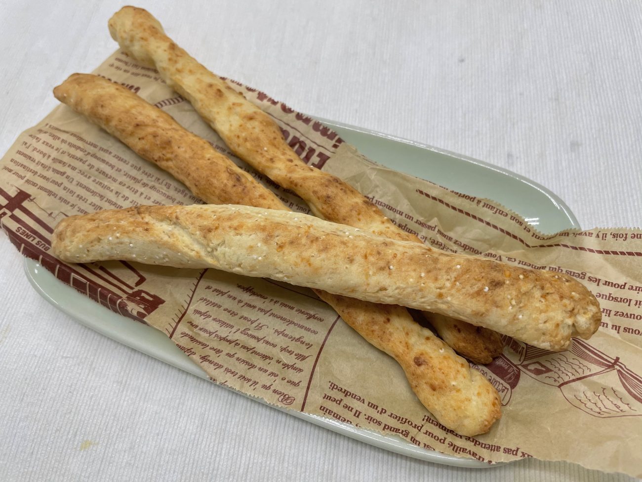おやつは、”雑穀カリカリ棒パン”でした。生地にもちあわを加えることで、プチプチっとした食感になり、見た目や味だけでなく、食感も楽しむことができるおやつとなりました。カリカリっとしたパンなので、しっかりと噛むことの練習にもなり、人気のおやつとなっています。生地にチーズも入っているので、ほんのりとチーズの香りもする美味しい棒パンとなりました。
