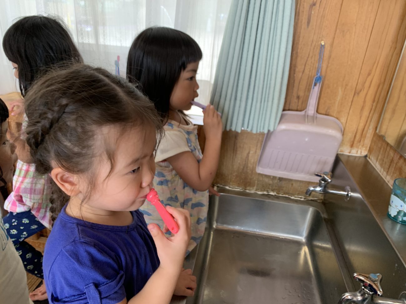 現在、保育園ではゆり組(2歳児クラス)の後半から歯磨きが始まります。子ども達は家庭で歯磨きをしているので、しっかりと歯を磨く様子が見られます。