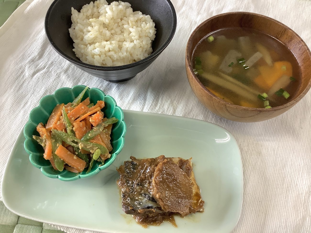 本日のメニューは、”魚の味噌煮””いんげんのごま和え””のっぺい汁”でした。