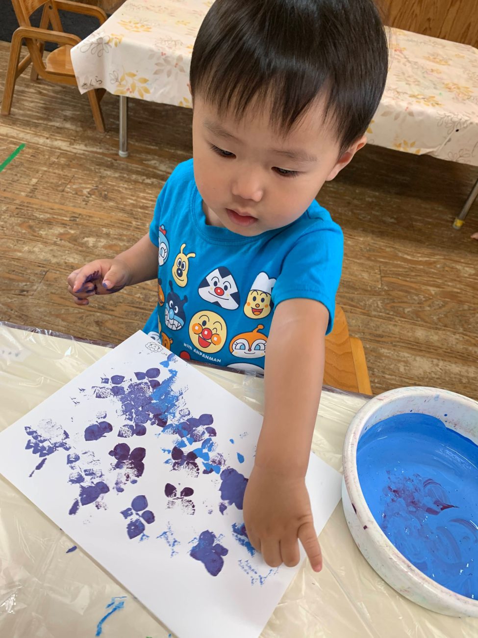様々な経験を通して学んでいく子ども達にとって五感を使う感触遊びはとても大切になってきます。今後も絵の具遊びだけでなく様々な感触遊びを行い、子ども達が色々なことへの興味が広がっていくように工夫していきたいと思います。文責:永井