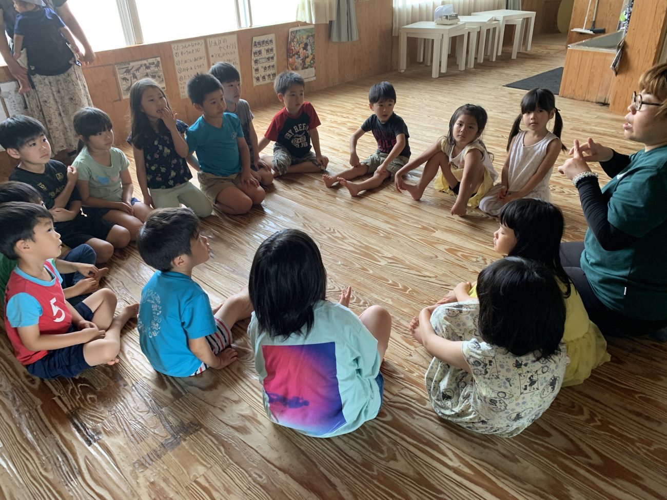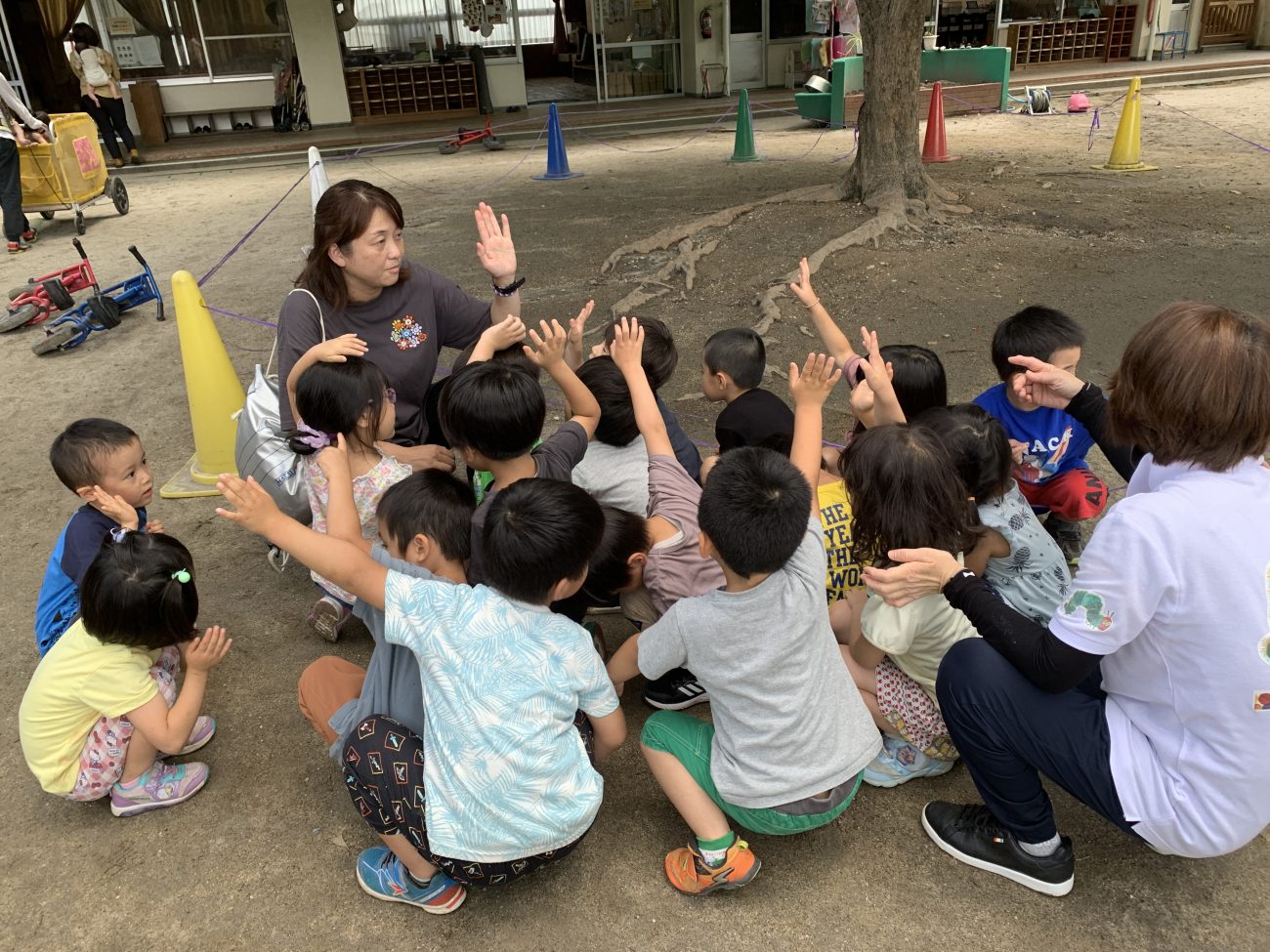 3歳以上児クラスは、避難訓練について子どもたちに事前に伝え、話の場を設けていました。