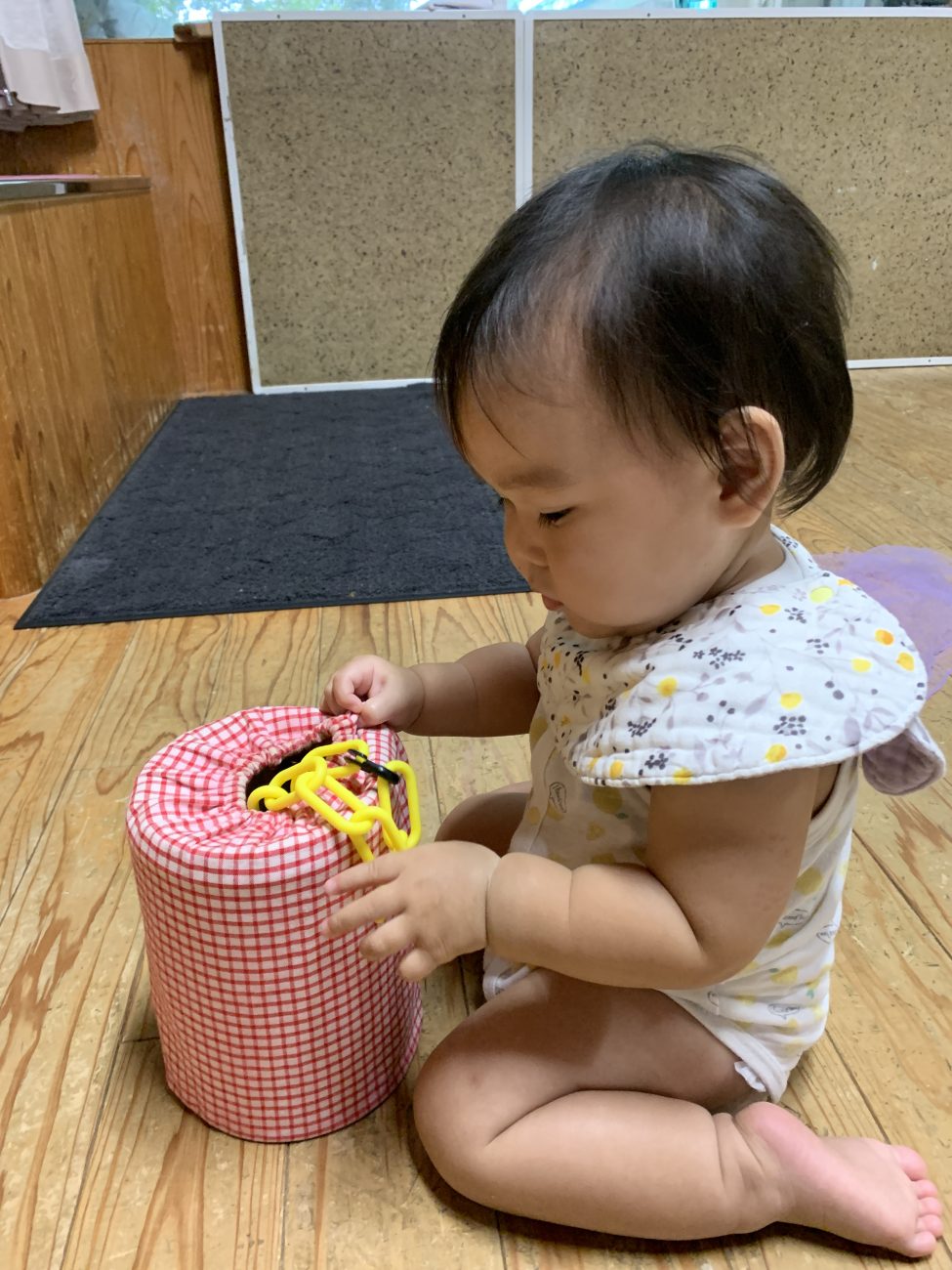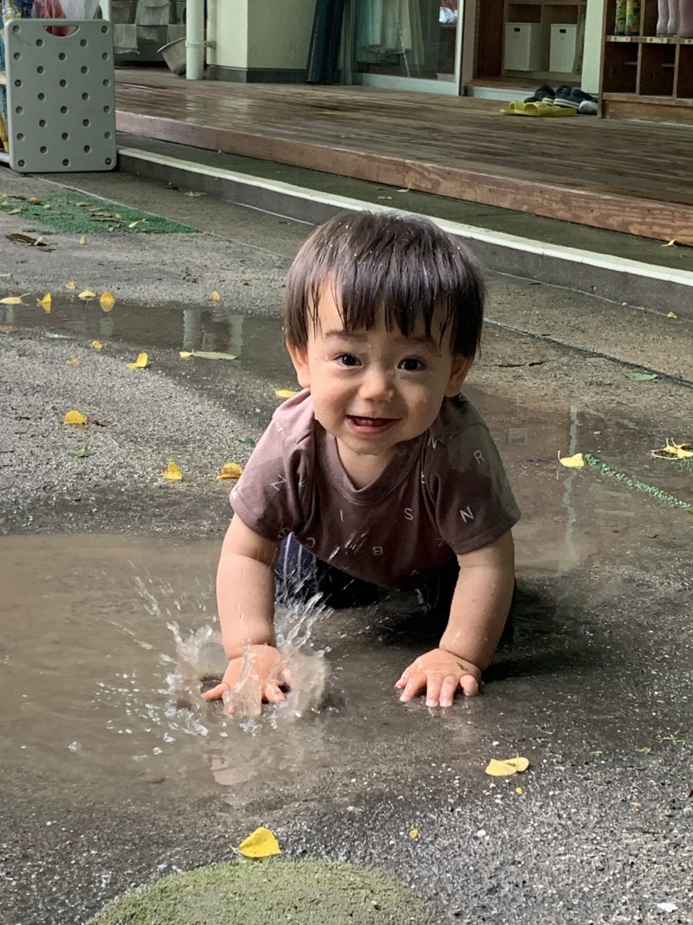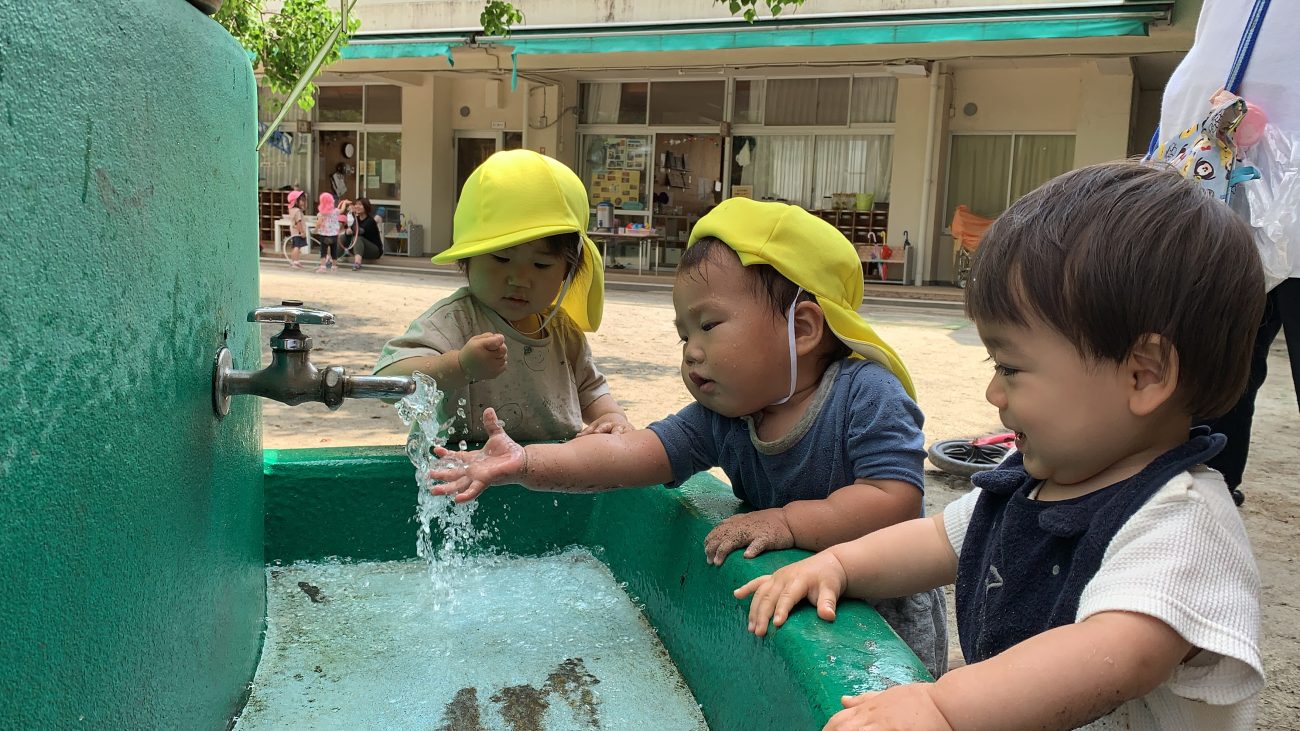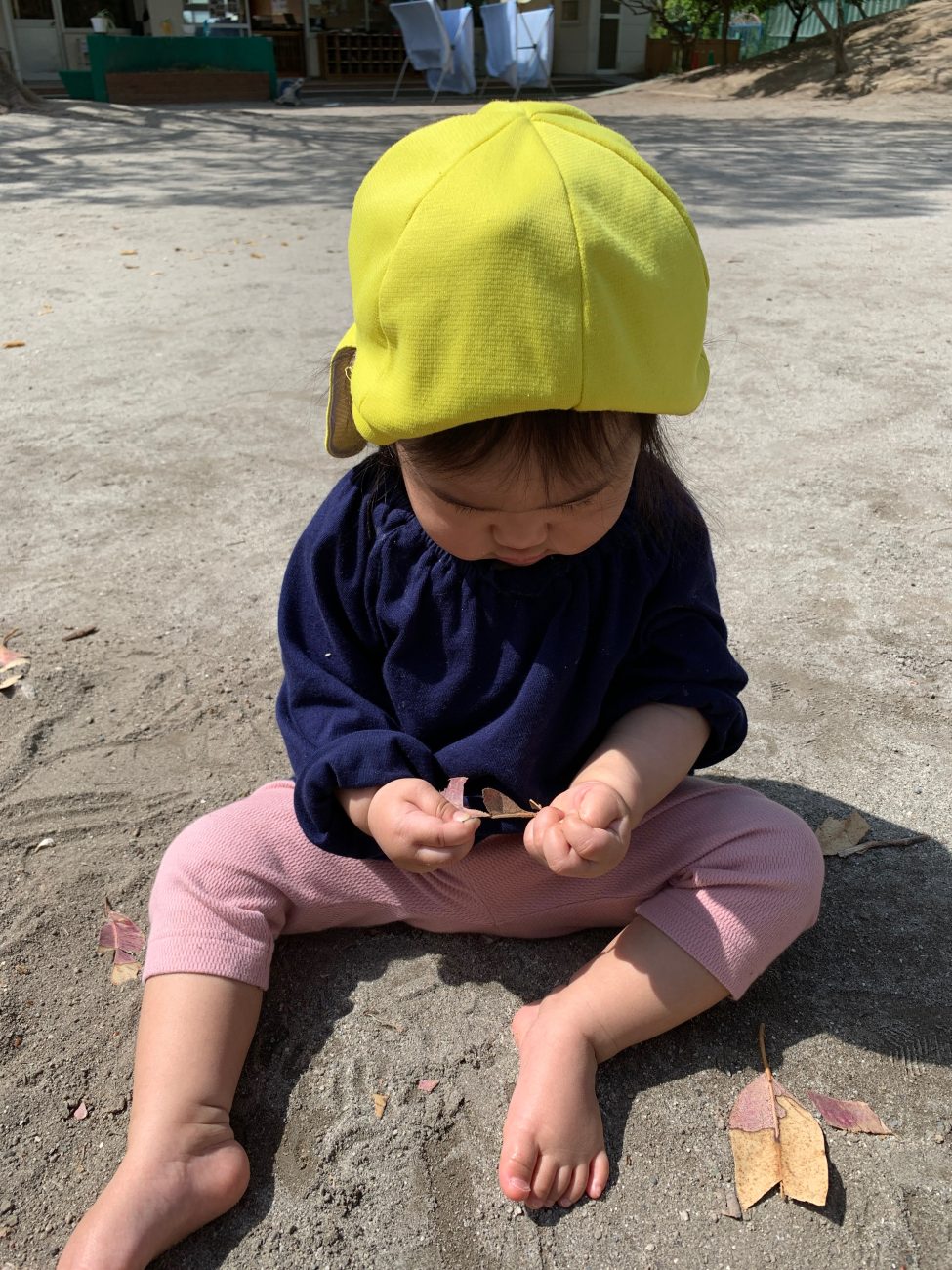 4月から積極的に戸外へ行き、砂や泥・水と触れ合ってきました。感触遊びを経験した0歳クラスの子どもたちについてご紹介します。