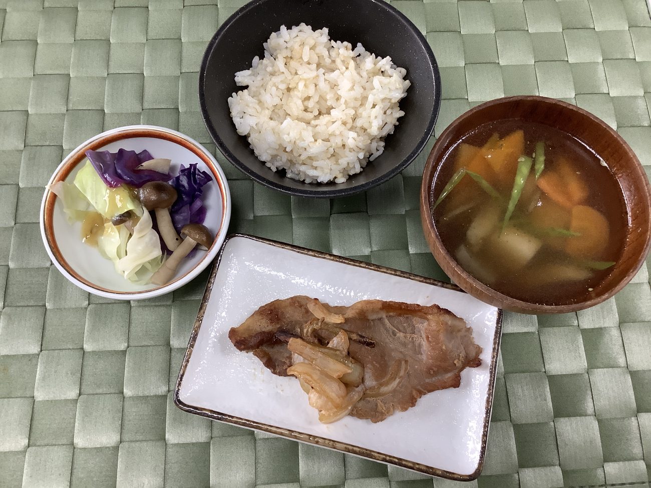 7月12日のメニューは、”豚肉の生姜焼き””温野菜酢味噌かけ””のっぺい汁”でした。