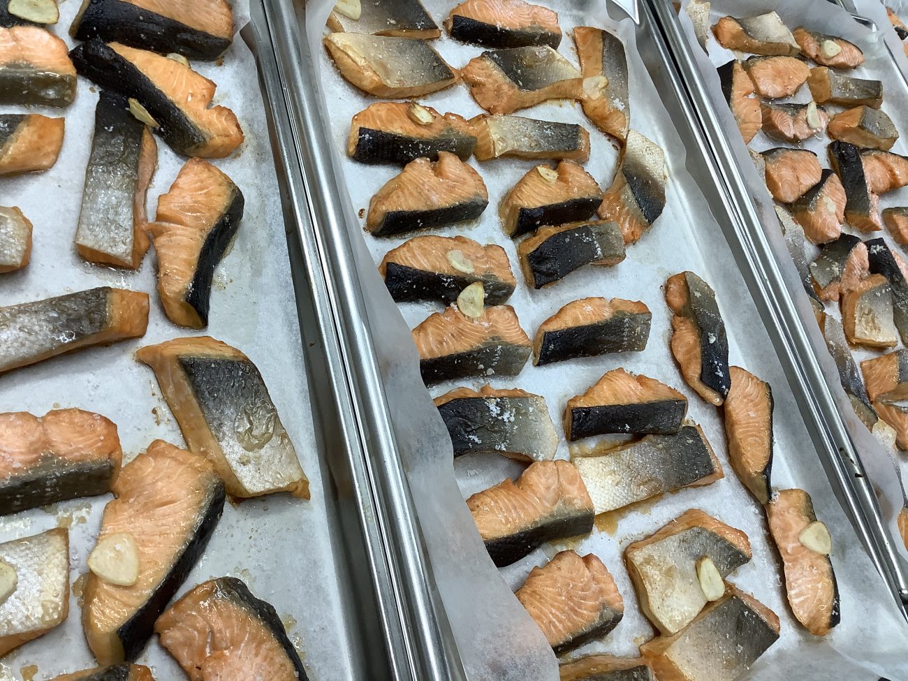 鮭のにんにく焼きは、鮭に塩.こしょう.スライスしたにんにくを混ぜて、しばらく置いてから焼きました。にんにくの香りがほんのりして、美味しく仕上がりました。