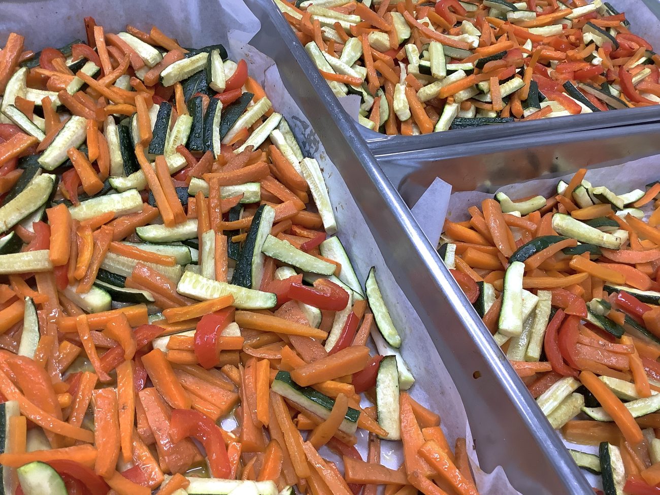 ズッキーニのグリルには、ズッキーニの他に、人参とパプリカを使用しました。人参は一度スチームにかけることで、甘みがでて、人参独特の風味がなくなりとても食べやすくなります。