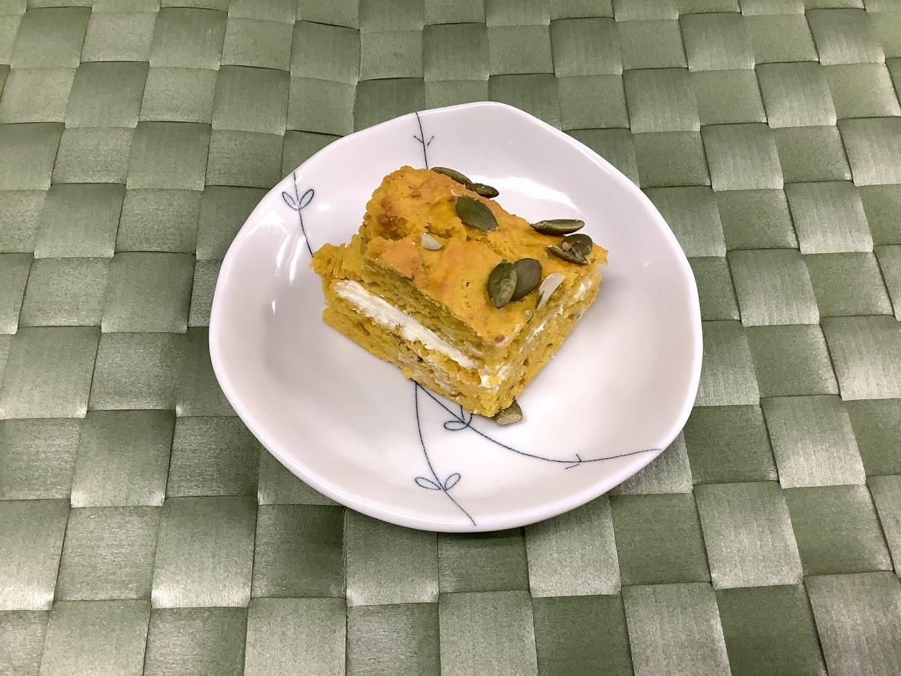 生地にペーストにしたかぼちゃを混ぜて焼きました。かぼちゃがとても甘く、甘い生地と塩気のあるクリームチーズとの相性がとても良く人気のおやつとなりました。