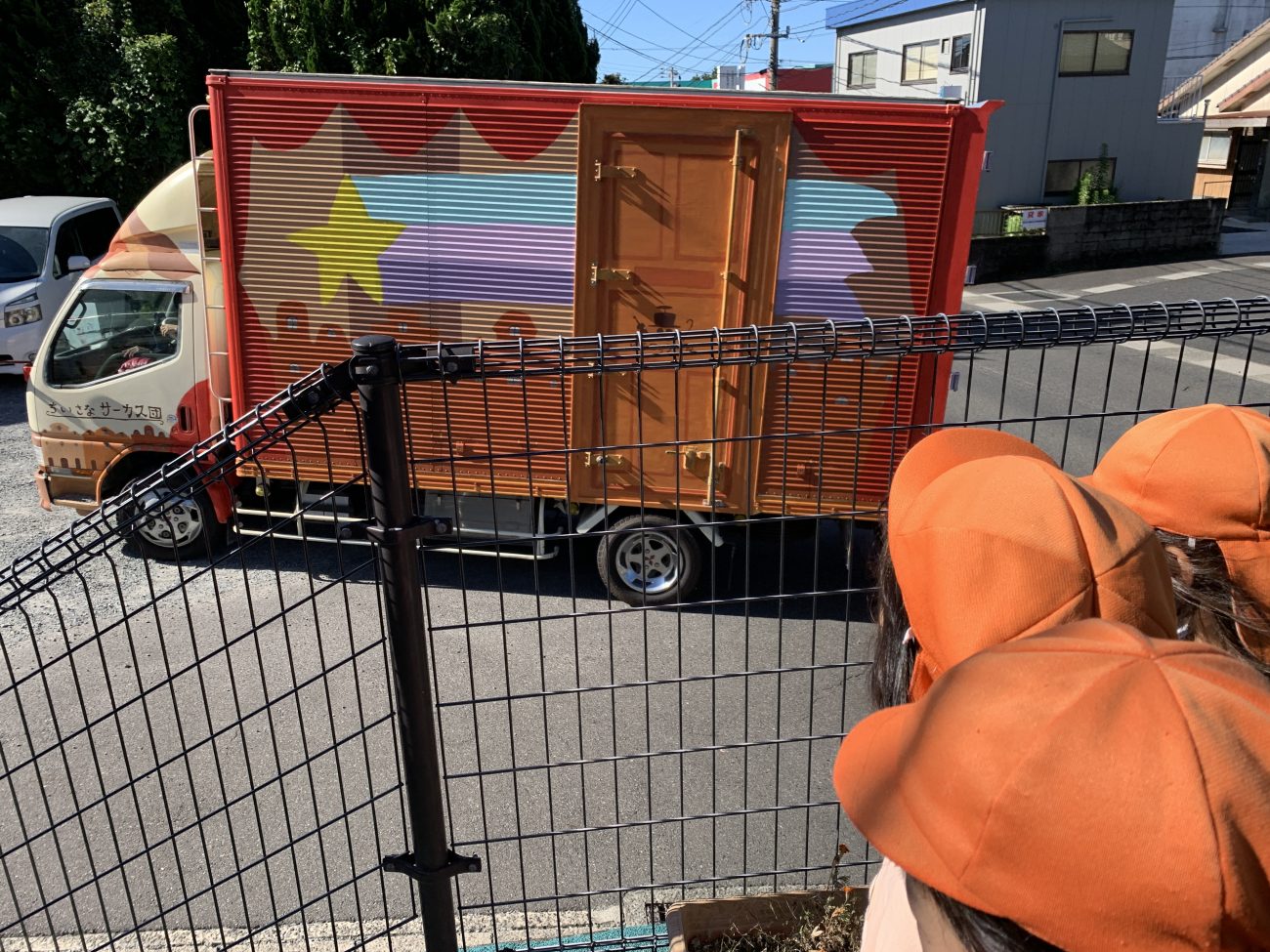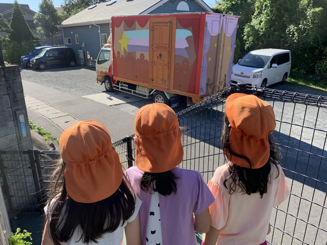 朝駐車場には、大きなトラックが到着。子ども達と一緒にトラックを見に行き、園庭に戻ると「かわいいトラックだった!」「お城みたいだったよ!」などあまり見たことのないトラックに大興奮でした。