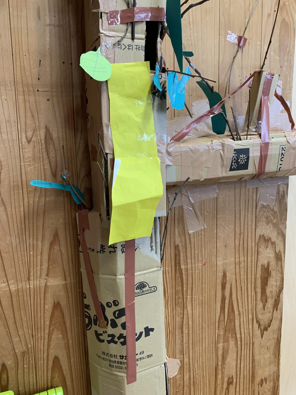 そこから、木が出来上がるまでは、あっ!という間でした。葉っぱを作る人・木の枝を園庭で集める人など、自然と作業分担して、作り上げていました。