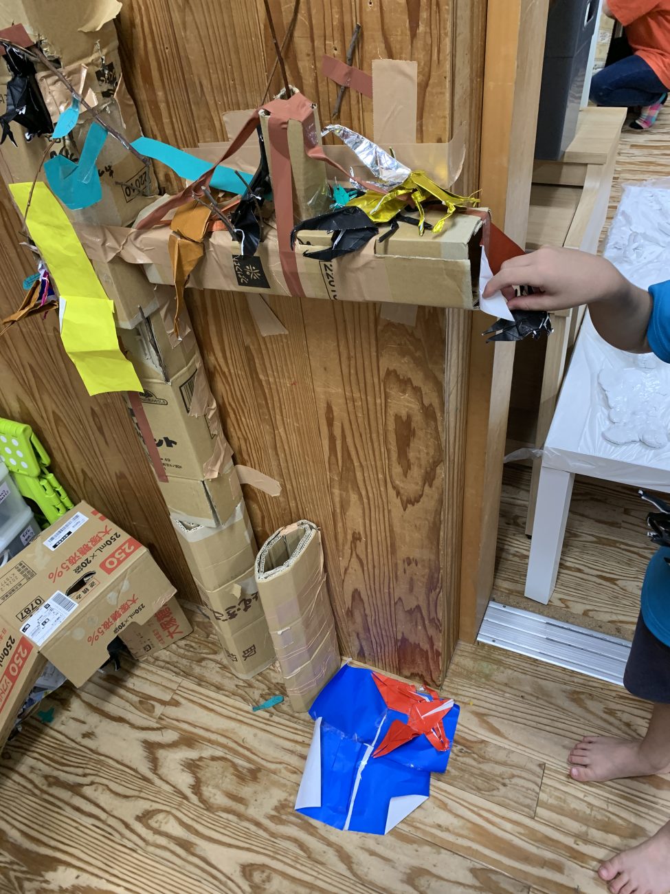 と、作りながら説明。すると、子ども達の中に何かイメージが浮かんだようで