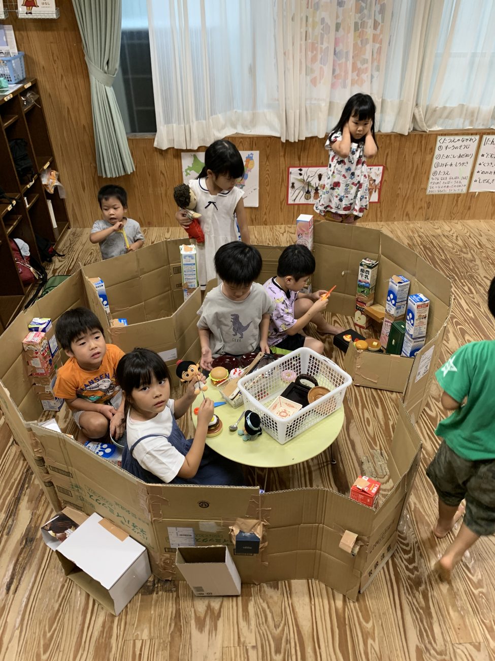 8月中旬くらいまでこの活動を継続し、子ども達の意見を取り入れながら、遊びが展開・発展していけるよう、私自身の援助や環境構成等も、十分に工夫して取り組んでいきたいと思います。
