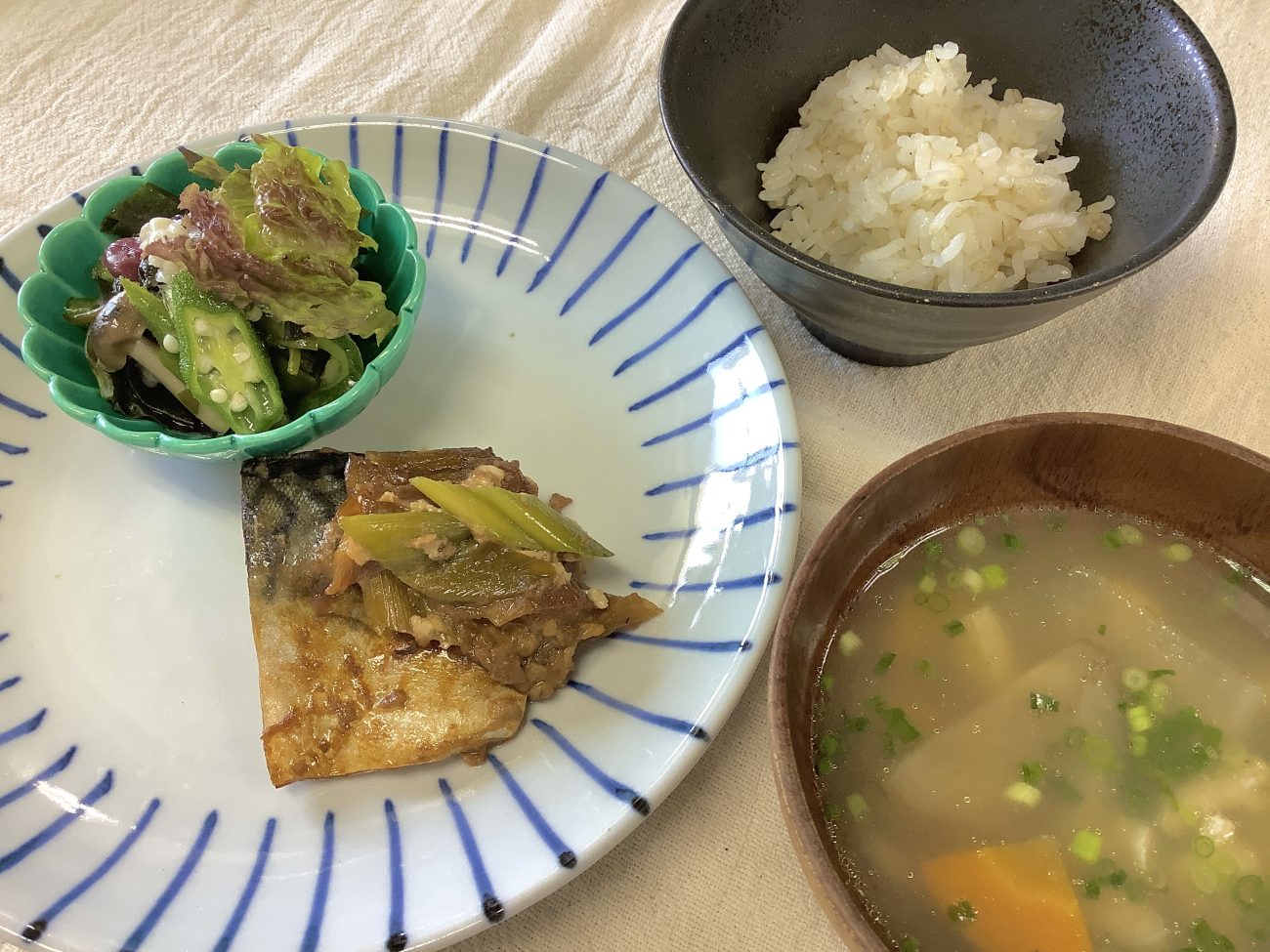 本日のメニューは”さばの味噌煮””海藻と押し麦の梅酢サラダ””けんちん汁”でした。