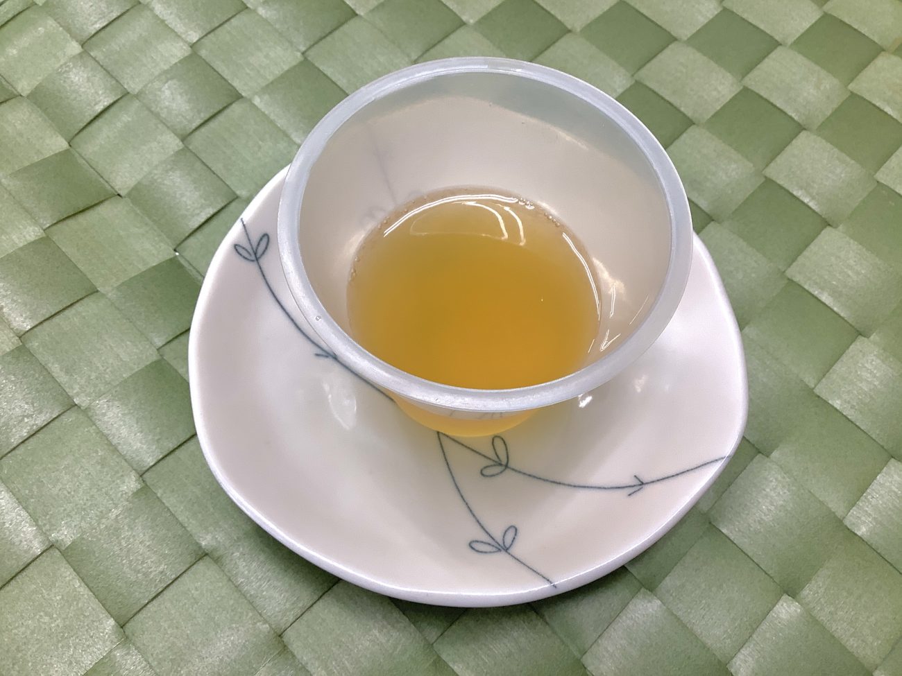 レモンの果汁を使用し、蜂蜜(たんぽぽ組の1歳未満の子には、乳児ボツリヌス症予防のため別のおやつを出してもらっています)や砂糖を加え、さっぱりとしてレモンの爽やかさや蜂蜜の甘味を感じれるゼリーとなりました。レモンの酸味を蜂蜜がなくしてくれて、とても食べやすいゼリーでした。