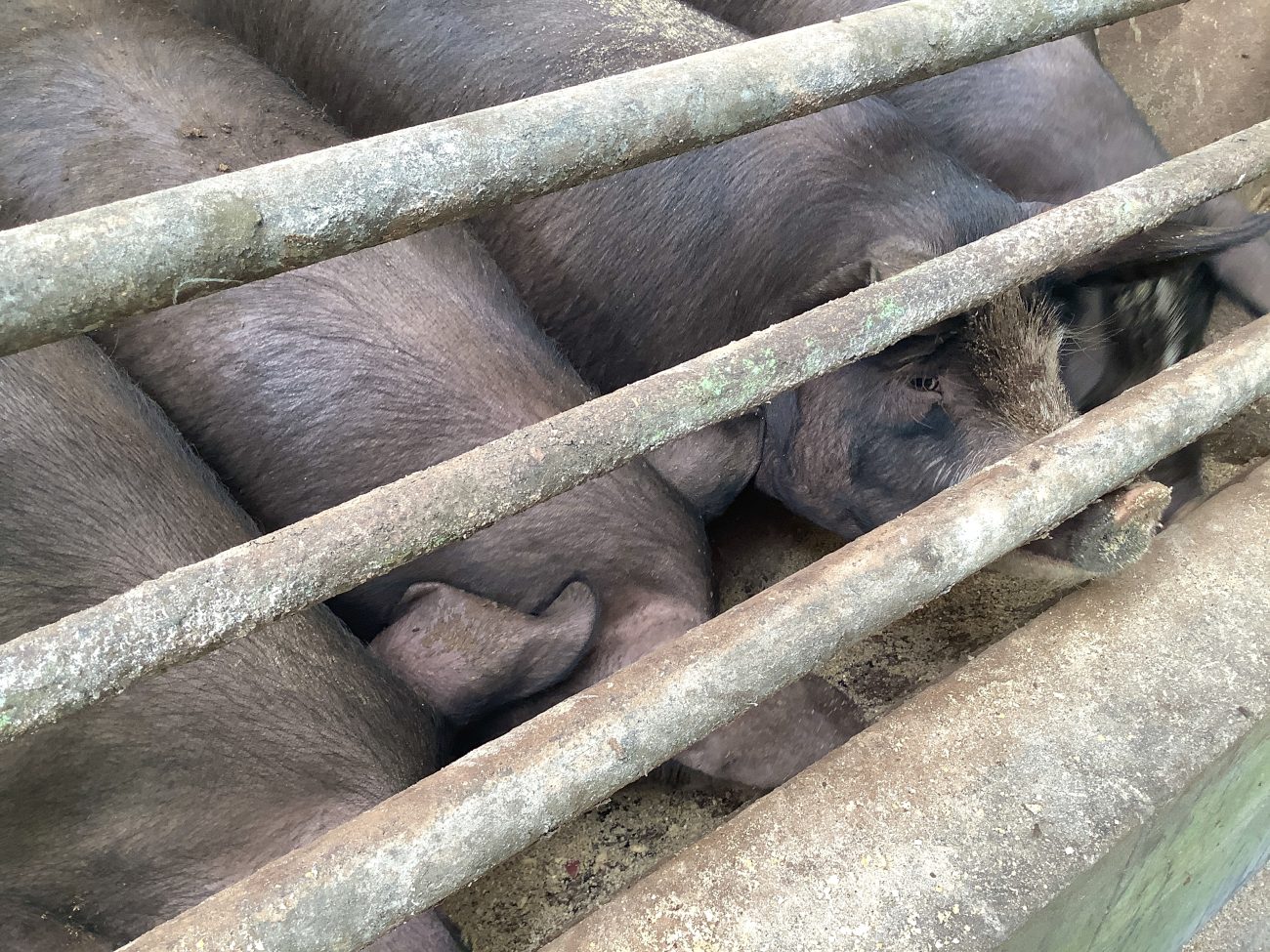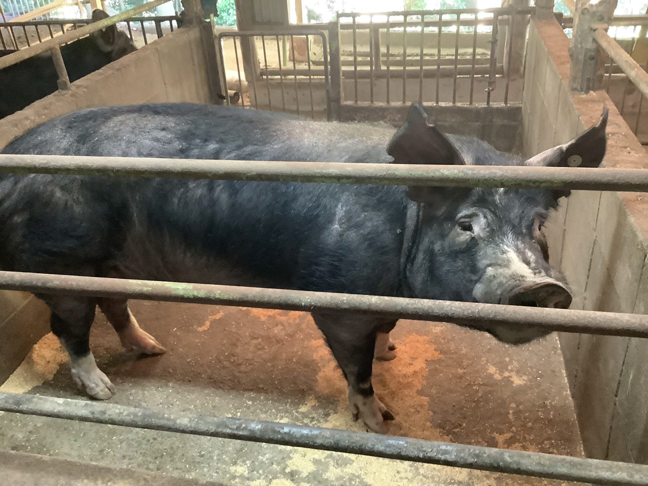 豚はストレスが高いとお互いの尻尾を噛みちぎってしまい傷口から感染症の恐れがあります。ですが、ゆうかり学園の黒豚は人にも慣れストレスが少ないので尻尾はそのままです。