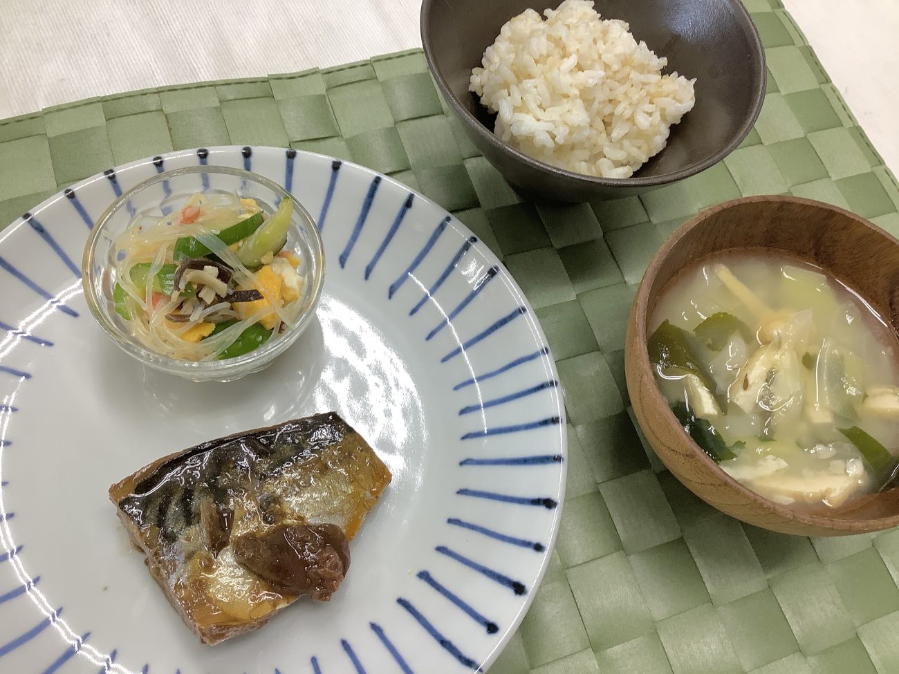 本日のメニューは”さばの梅煮””春雨の酢の物””キャベツのみそ汁”でした。