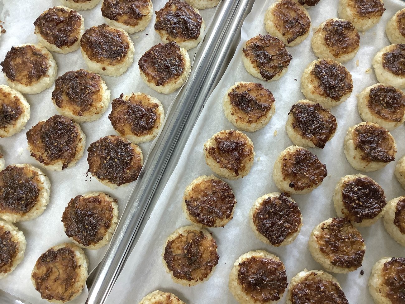 おやつは、”大葉味噌焼きおにぎり”でした。赤味噌・みりん・きび糖に胡麻を加え、千切りにした大葉と合わせ、おにぎりの上にぬり焼きました。胡麻を加えることで香りがさらに良くなり、味噌の効いた美味しいおにぎりでした。