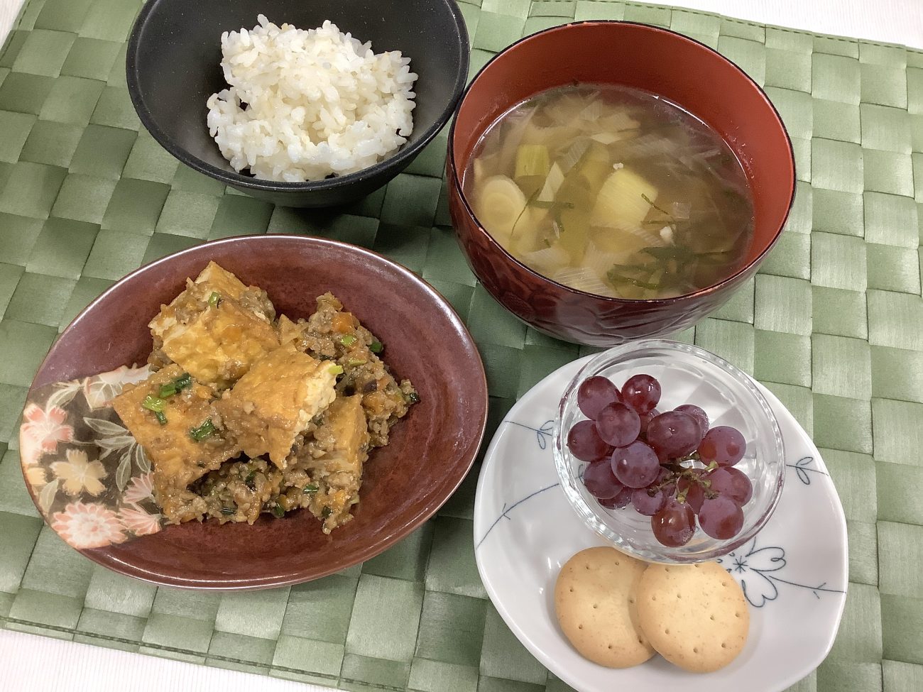 本日のメニューは”厚揚げマーボー””長ネギのスープ”でした。