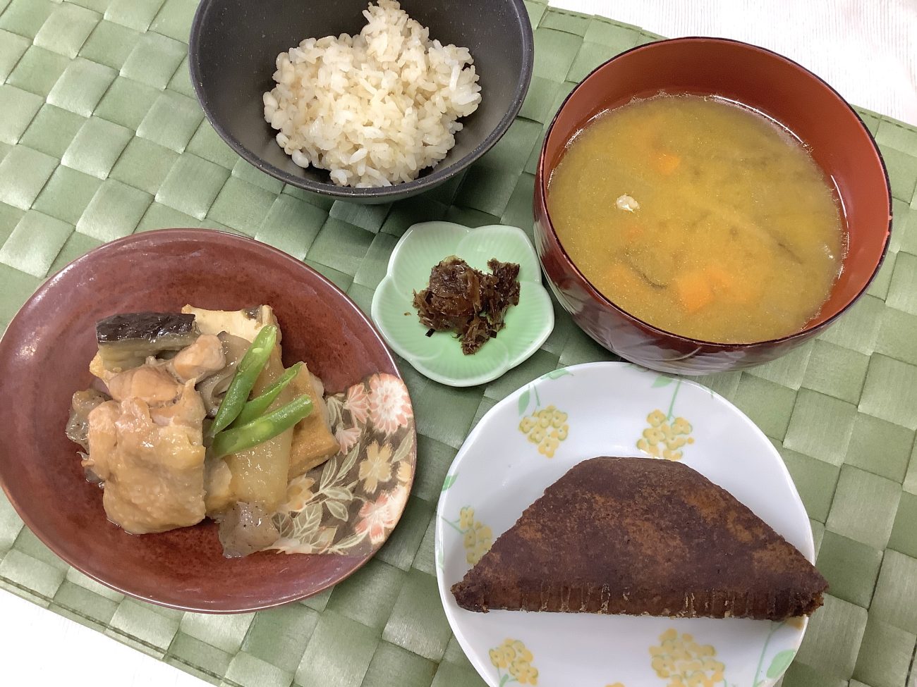 本日のメニューは、【鹿児島の食の日】となっており”鶏肉と冬瓜の煮物””かいのこ汁”でした。