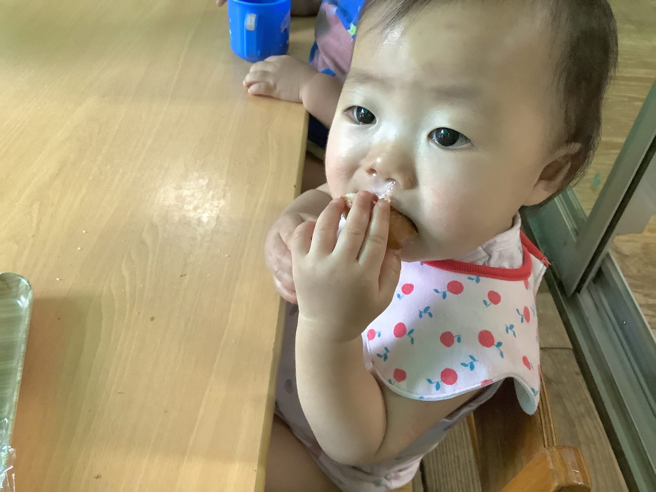 たんぽぽ組のおやつの時間を見学させてもらいました。ラスクなので少し硬く、不安でしたが、みんな上手に口に運び、食べてくれていました。ゆっくりラスクを柔らかくして、たくさんたくさん食べてくれました。