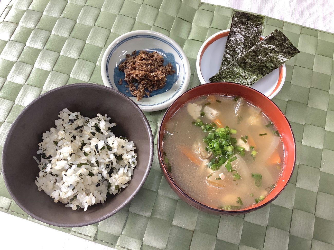 本日のメニューは粗食の日となっており”わかめご飯””のり””けんちん汁”でした。