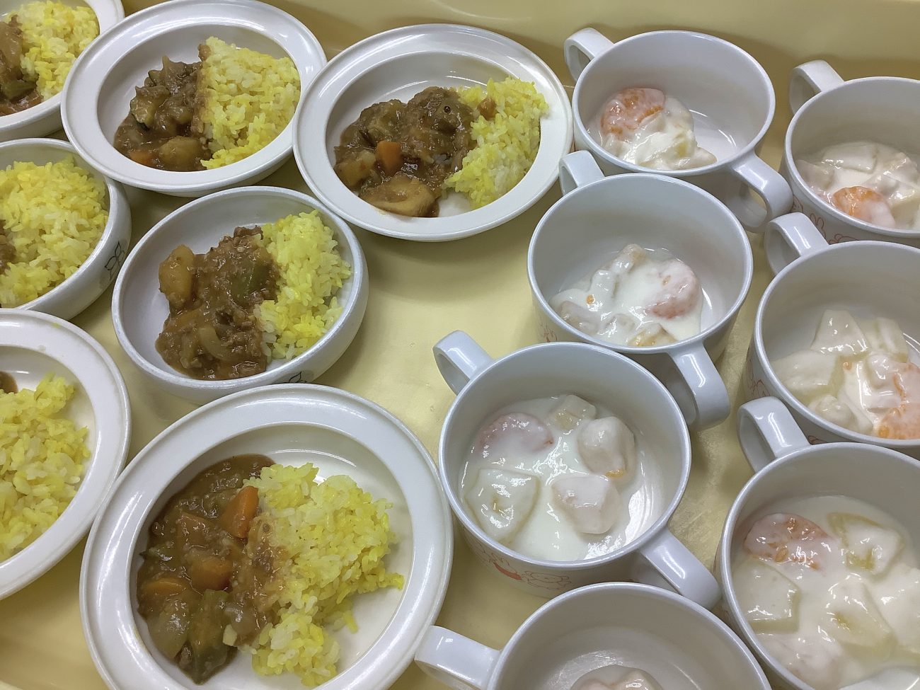 おやつは”ストーンクッキー”でした。生地には、コーンフレーク・かぼちゃの種・レーズンが入っています。ゴロゴロとしたクッキーとなり、焼いている際には、給食室の外にまでクッキーのいい香りが広がり、子どもたちが「いい匂い!!」と様子を見にきてくれました。そして、おかわりもたくさんきてくれました。