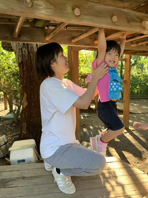Aちゃんが雲梯の棒を両手で掴むと「すごーい!やったね!」と拍手して喜ぶYちゃんの姿がありました。