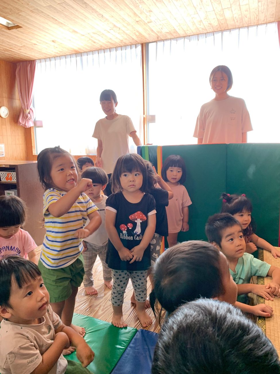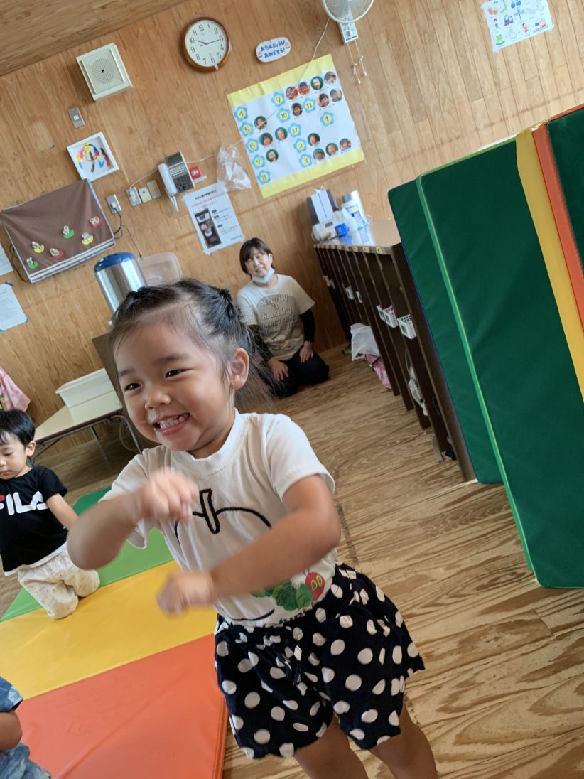 “手をぐるぐるぐるぐる〜”と回しながら言っているのを見て、周りの子も「ほんとだ〜」と言い一緒に手を回しながらニコニコ。その姿を見て「絵本をよく見ていたのだな〜」と感心もしました。