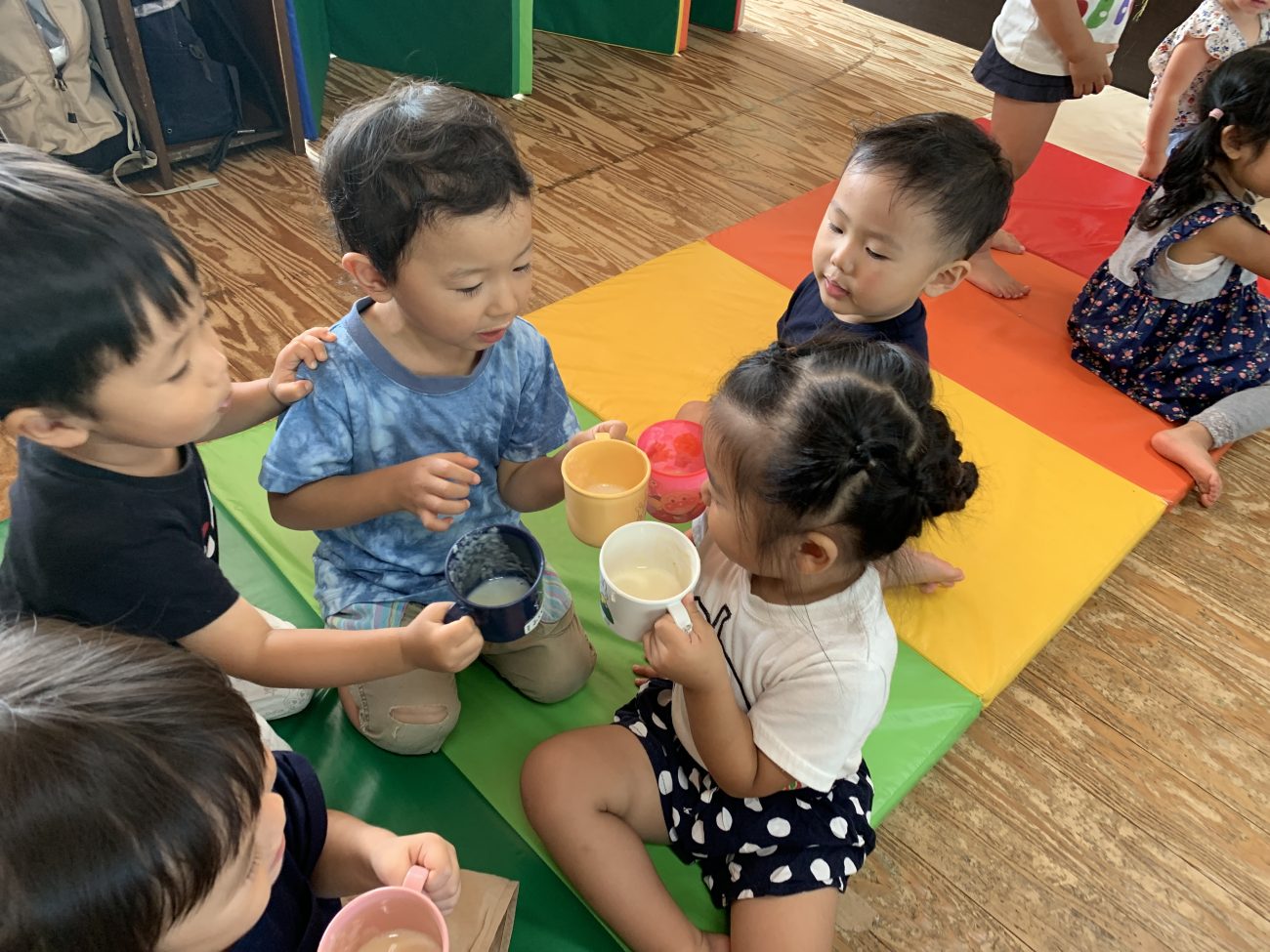 さて、できあがったジュースを一口飲むと「バナナの味がする」や「みかんの味だよ」とそれぞれ思ったことを言葉にして教えてくれました。みんなとてもおいしかったようで「おかわり」と笑顔で言ってくれる姿にとても嬉しく感じ、またこのような体験ができたらいいなと思うところでした。