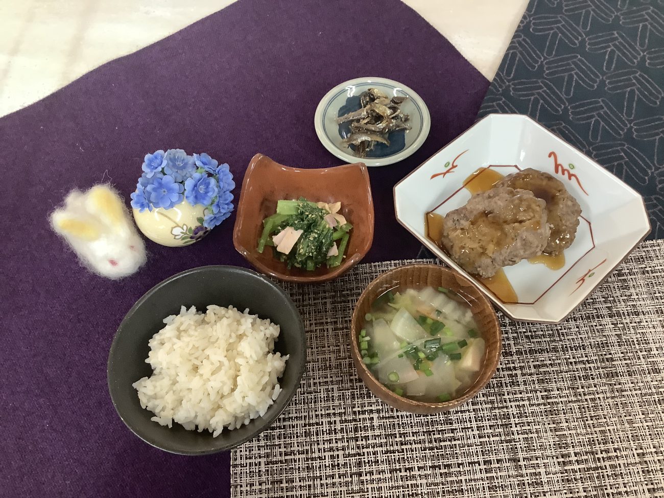 れんこんのシャキシャキとした食感に、甘辛いタレがかかったハンバーグは、ご飯がとても進む一品に仕上がりました。おかわりもあっという間になくなりましたよ♪